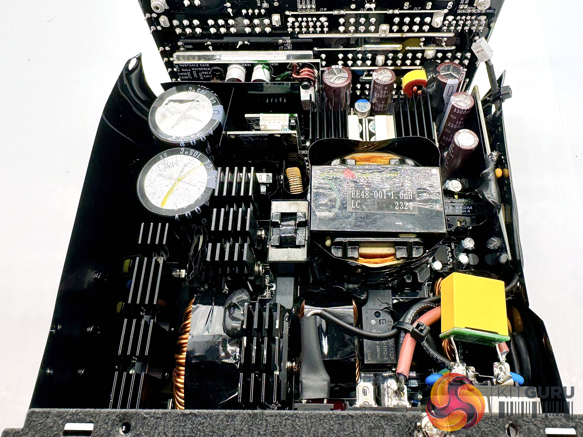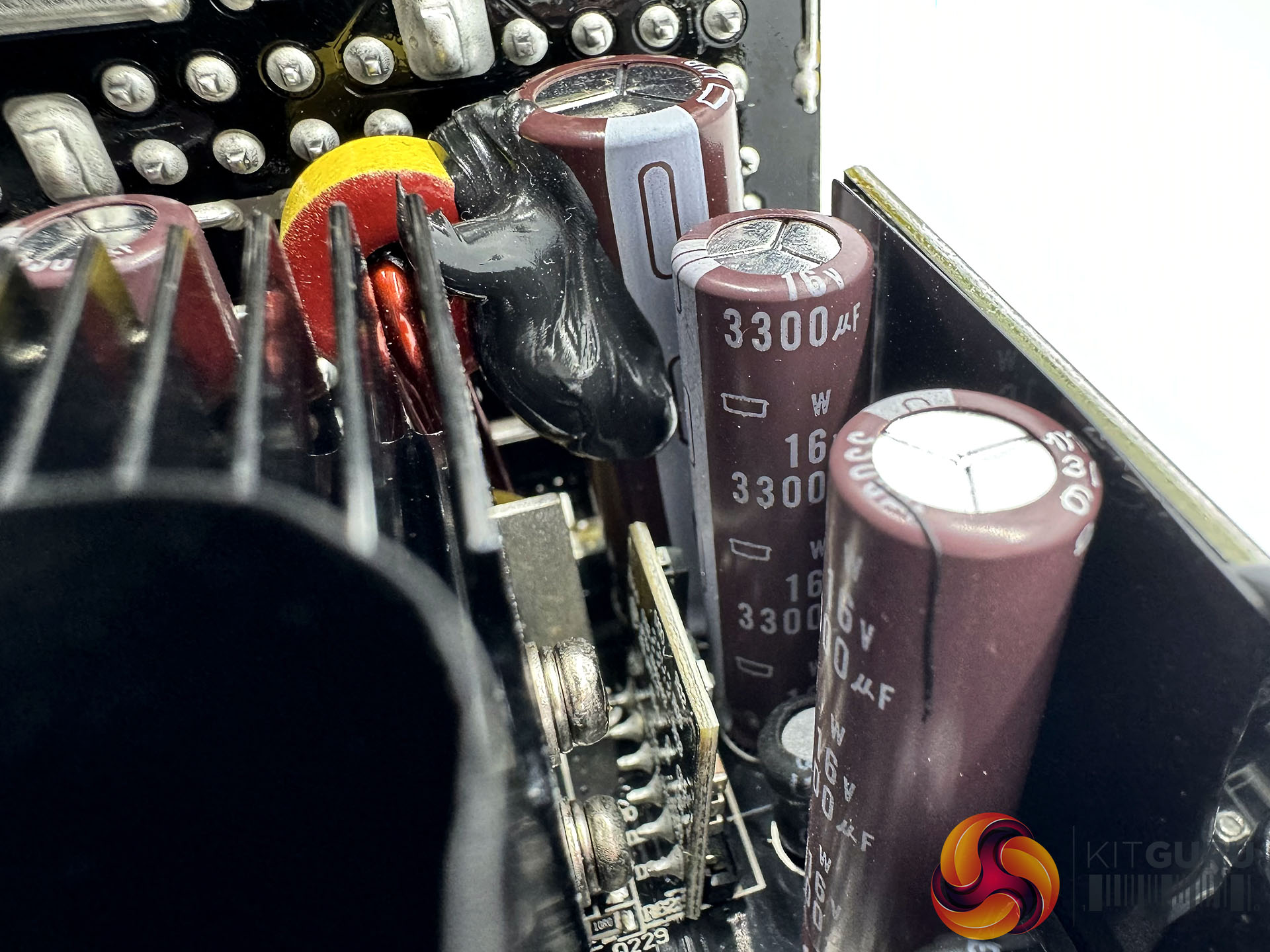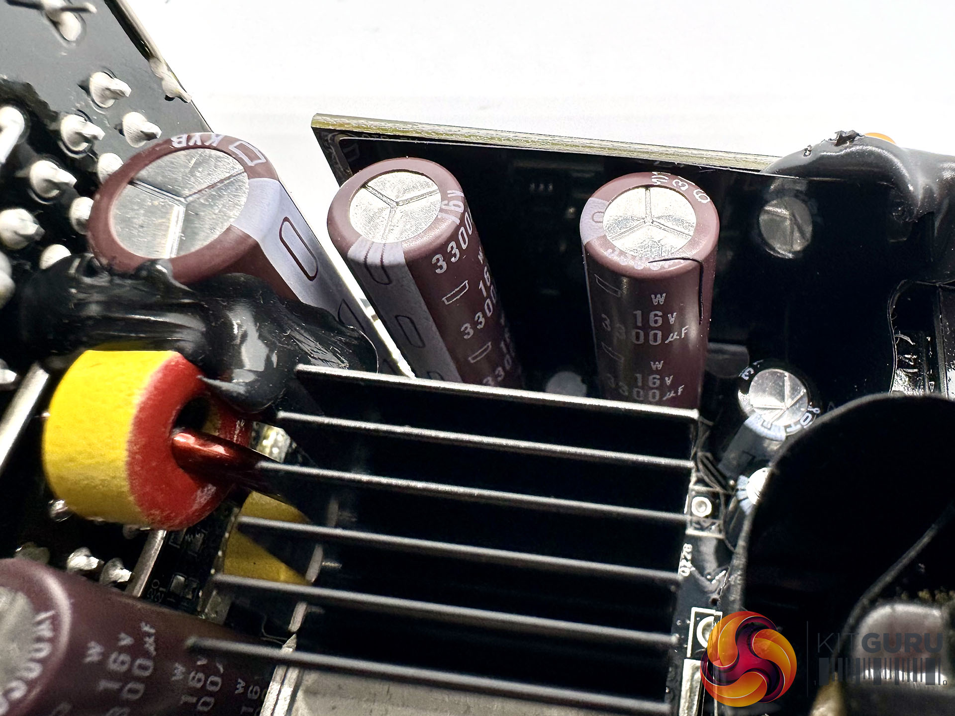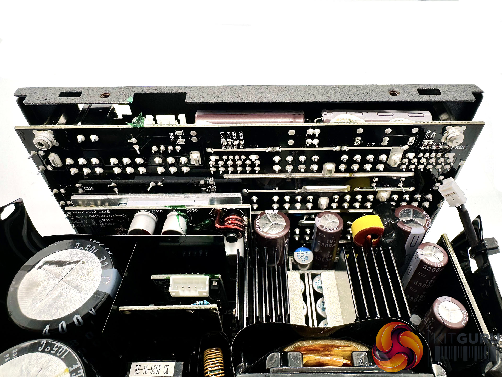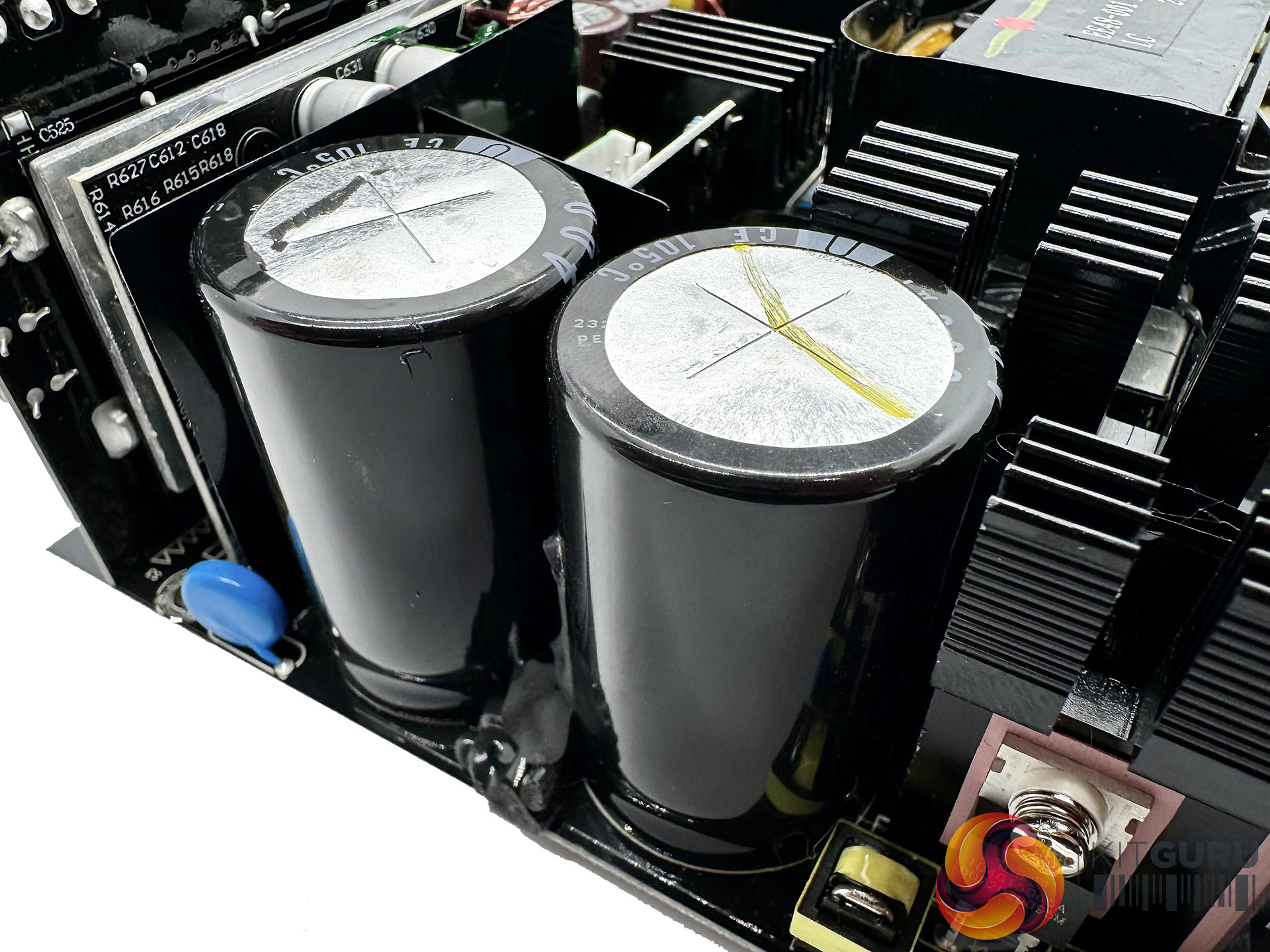 Again, we can see Enermax and SANR aren't penny pinching, as they are adopting high grade Japanese Capacitors throughout the design. A pair of Nichicon 105c rated Japanese capacitors handle the primary stage. These are rated 680uF 400V, for a total of 1360uF. Secondary stage capacitors are also high grade units we would expect to see in a power supply at this price.
