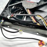 There is a plastic shroud covering part of the fan – along the top section. This is to forcibly direct airflow over specific parts of the design and heatsinks, underneath.