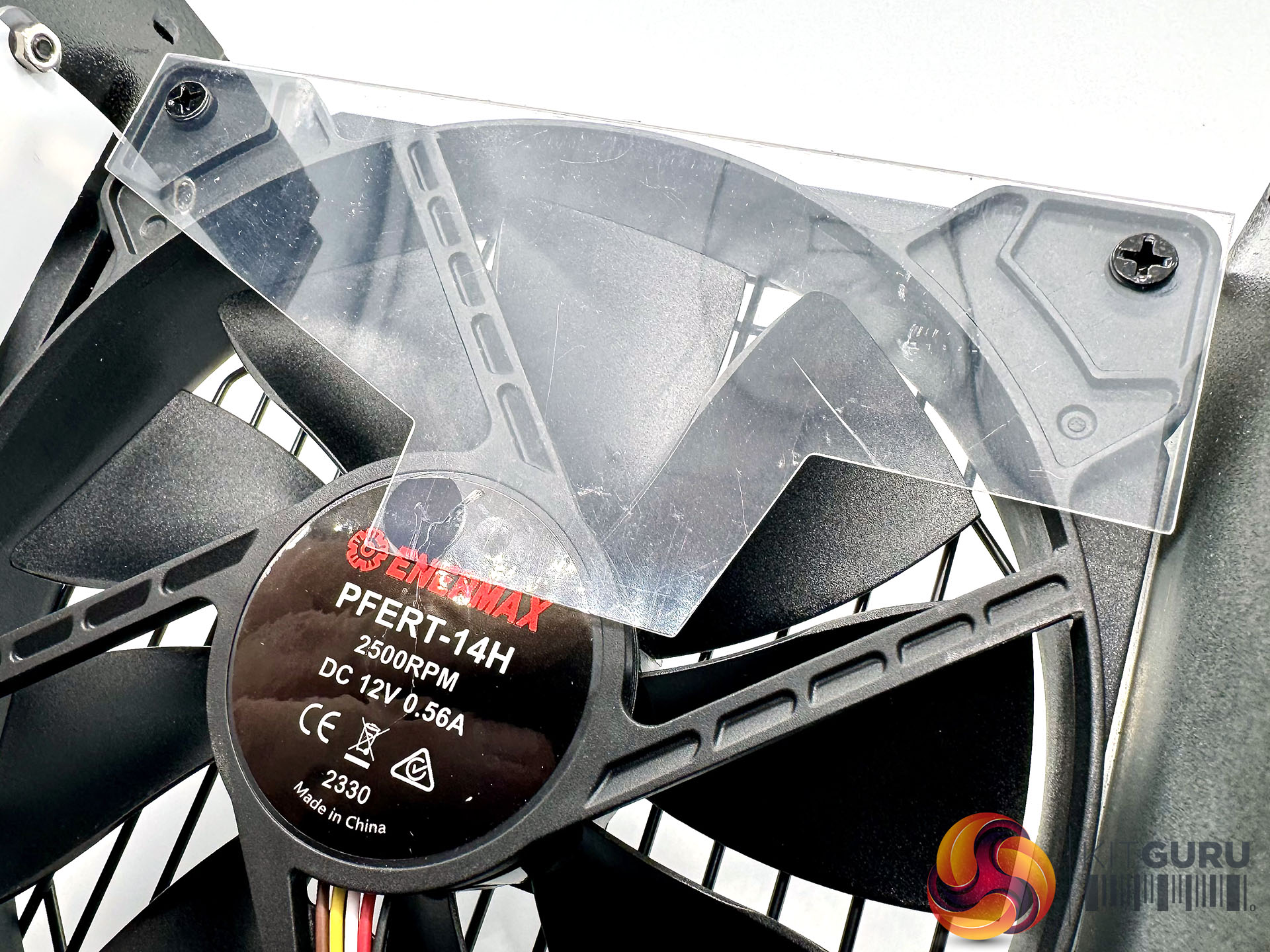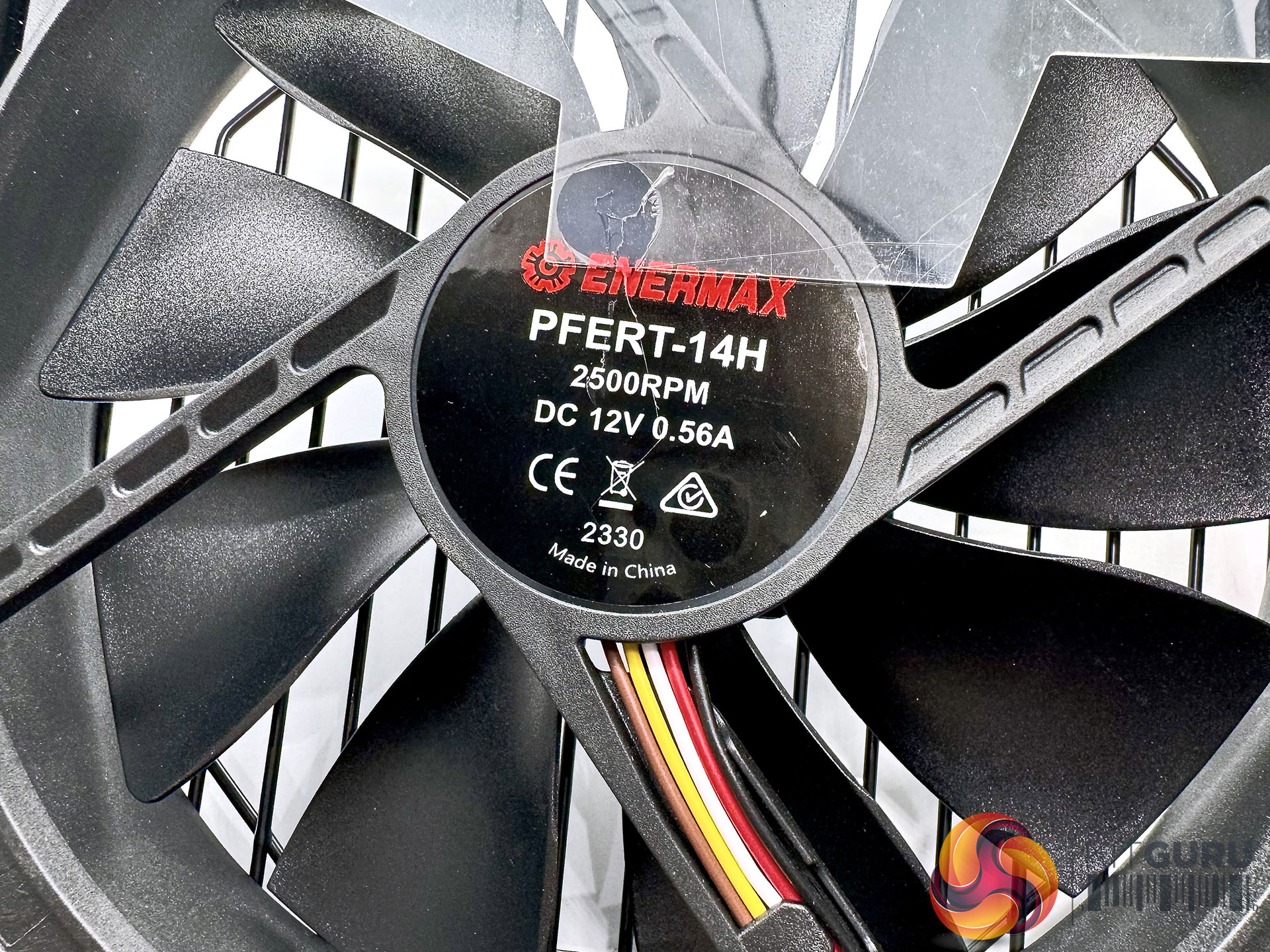 Enermax are using their PFERT-14H fan in this unit. This is a dual bearing fan, rated at speeds up to 2,500 rpm, with DC 12V, 0.56A. Enermax have a lot of literature available for this fan. It uses ‘industrial grade' dual ball bearings to reduce unnecessary friction and to optimise performance.