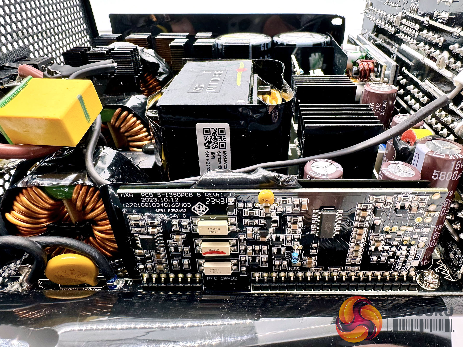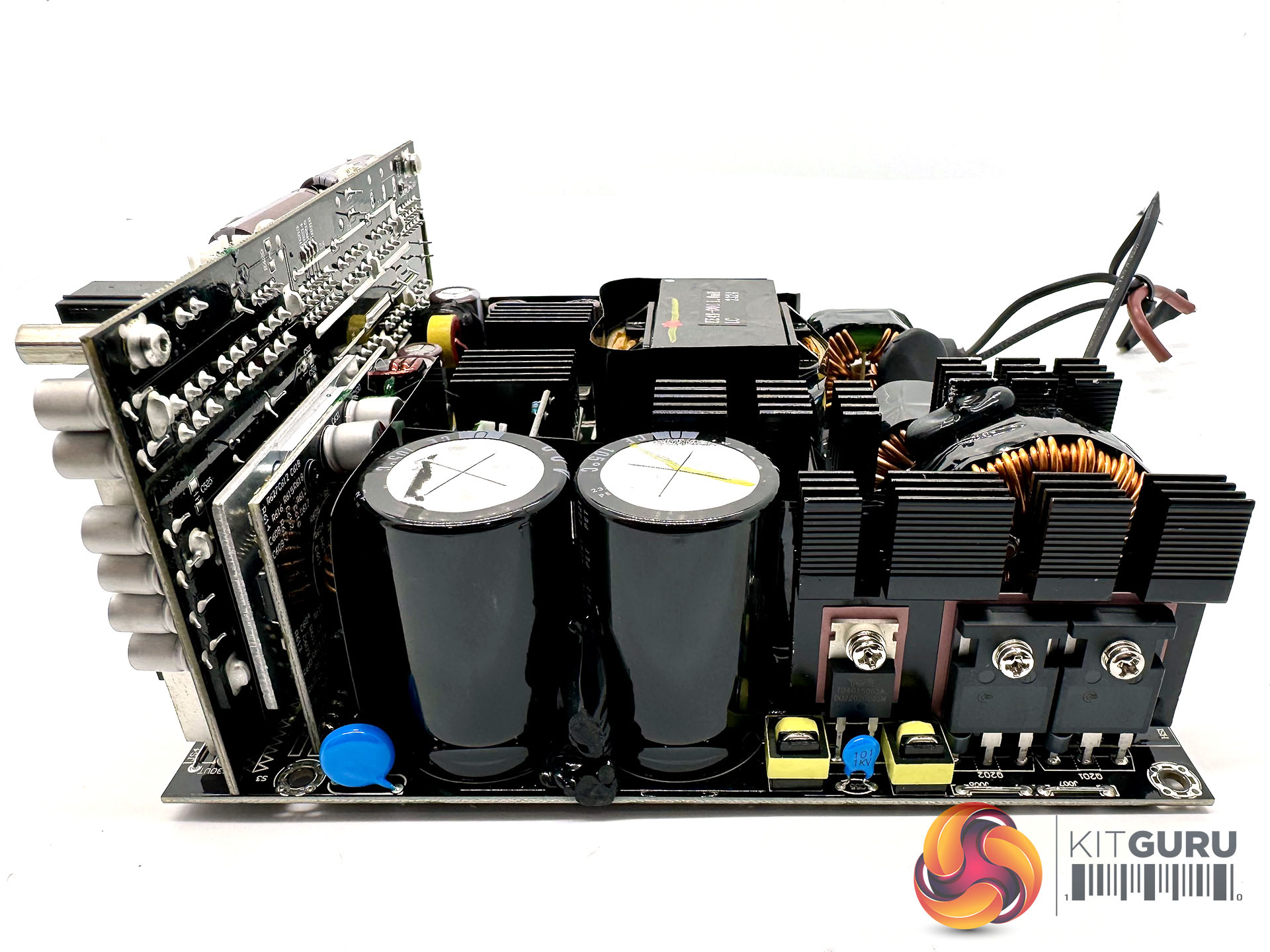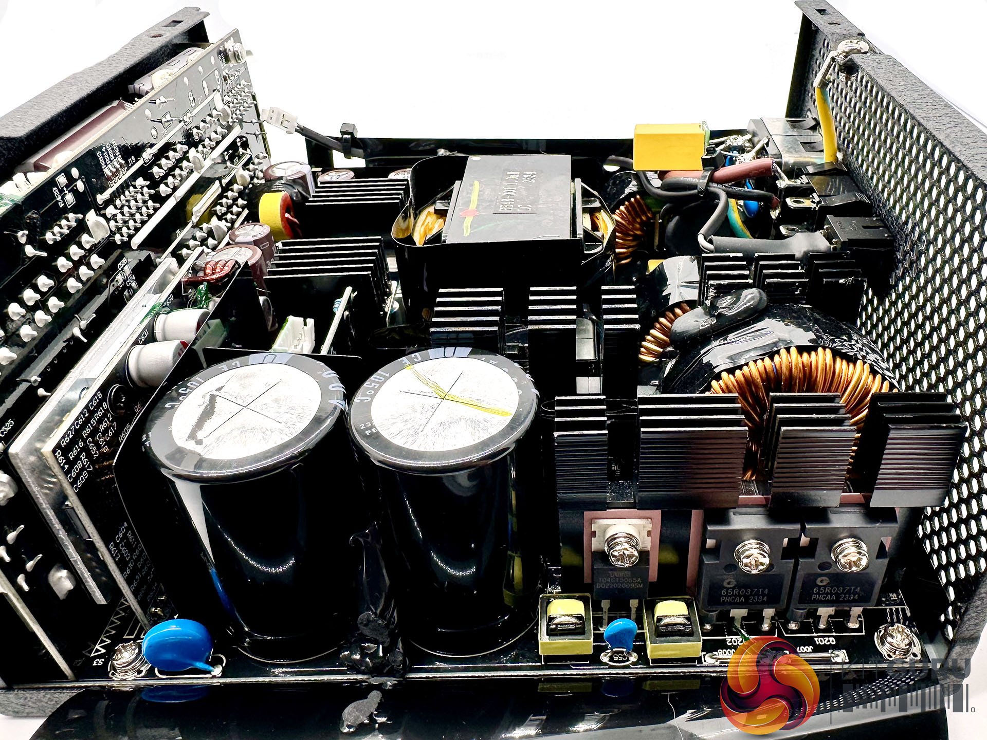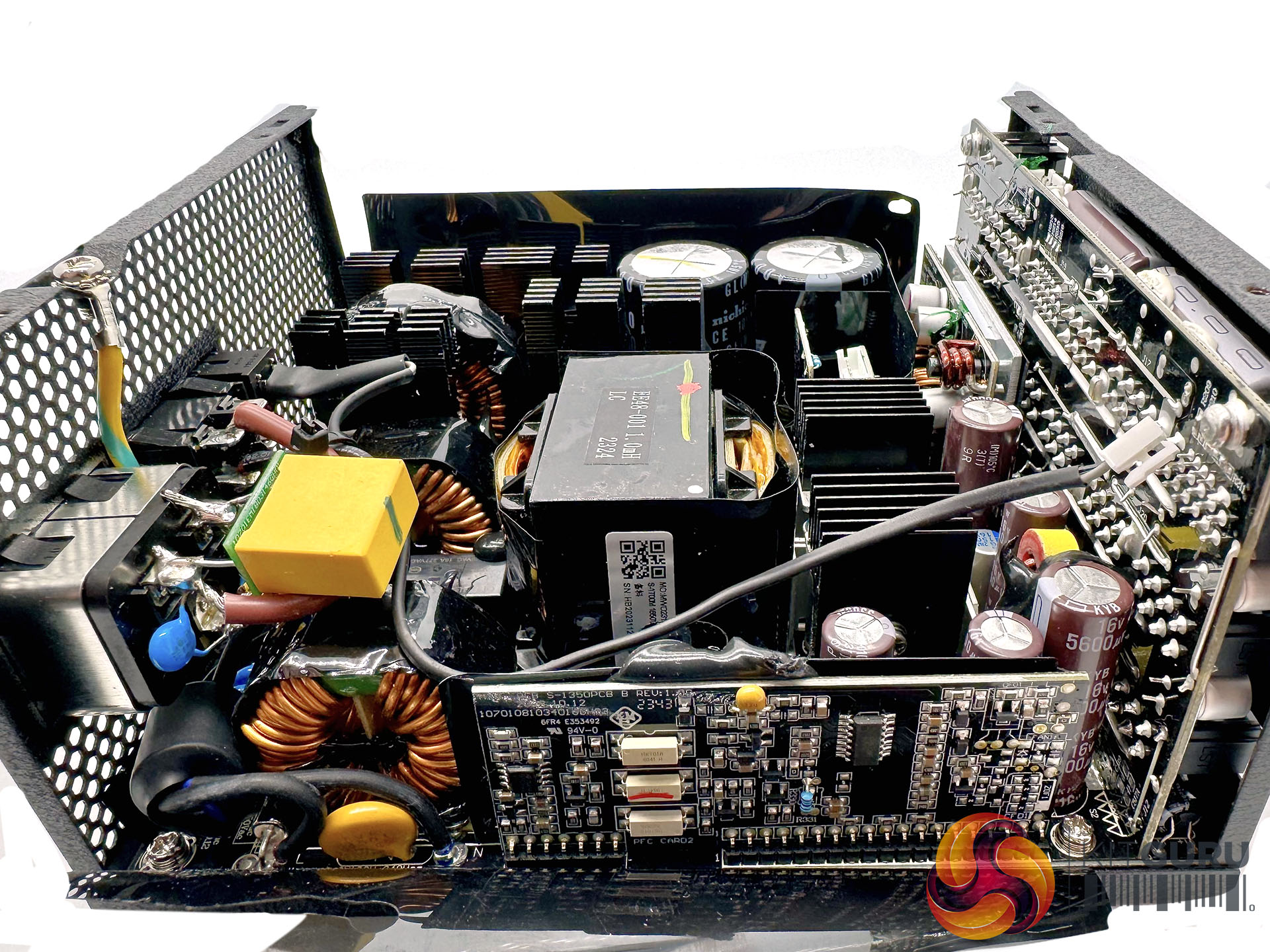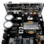 We can see this is a SANR OEM manufactured design for Enermax. SANR seem to be the OEM for the Enermax Revolution D.F. X series of power supplies. This is a half bridge LLC resonant converter with DC to DC circuit design offering good output efficiency and voltage stability.
