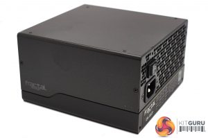 The single +12V rail is able to deliver 71.6 Amps for 860W of the total load. Interesting to see that Fractal have placed the power characteristic sticker on the rear of the chassis – this can be seen from the outside of the system build when the power supply is installed.