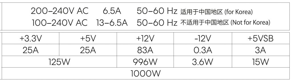 The Ion 3 Gold delivers 83A on the +12V rail, with 25A available from the +3.3V and +5V rails. This is a pretty traditional kind of setup for a 1000W unit.