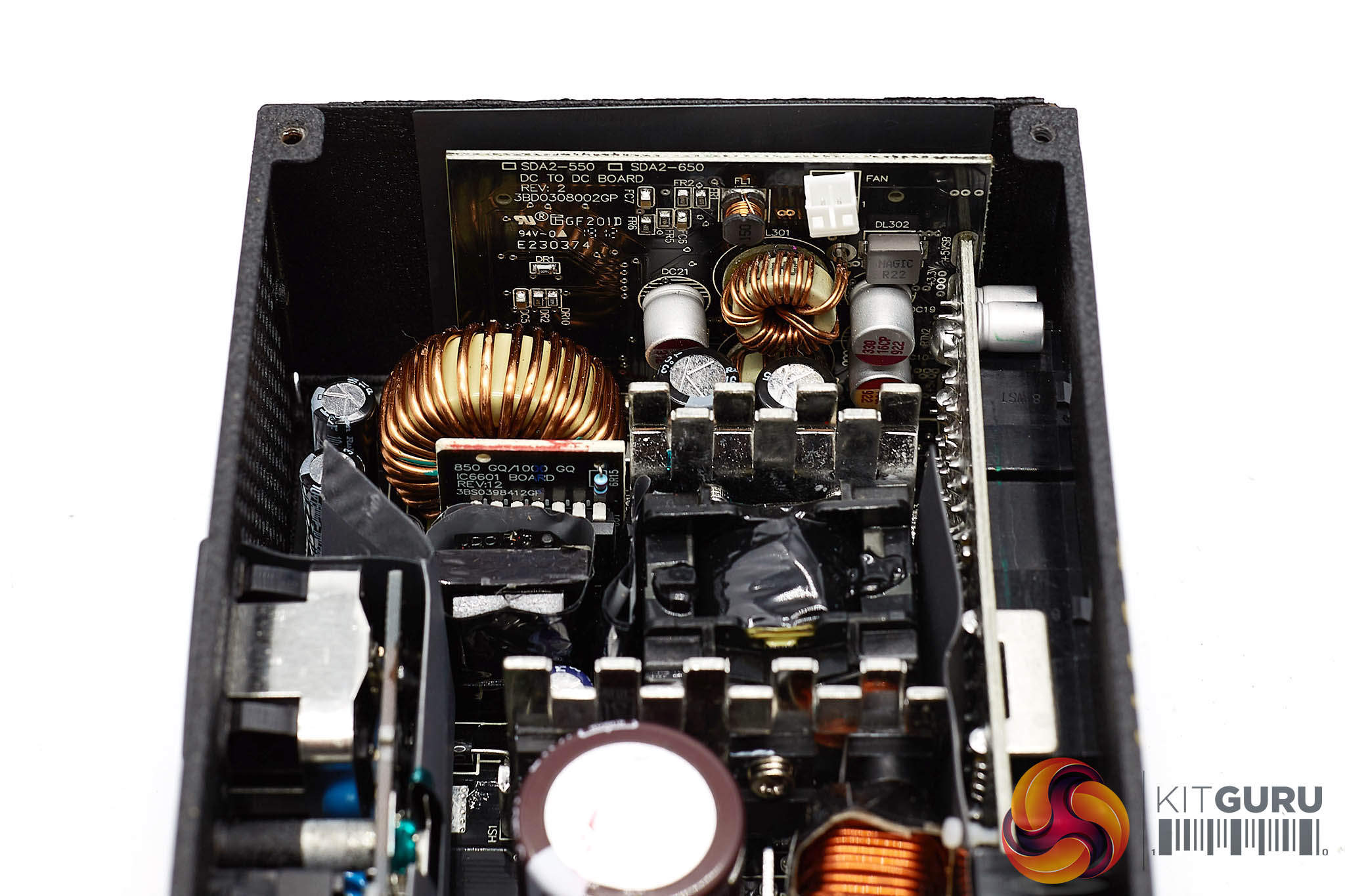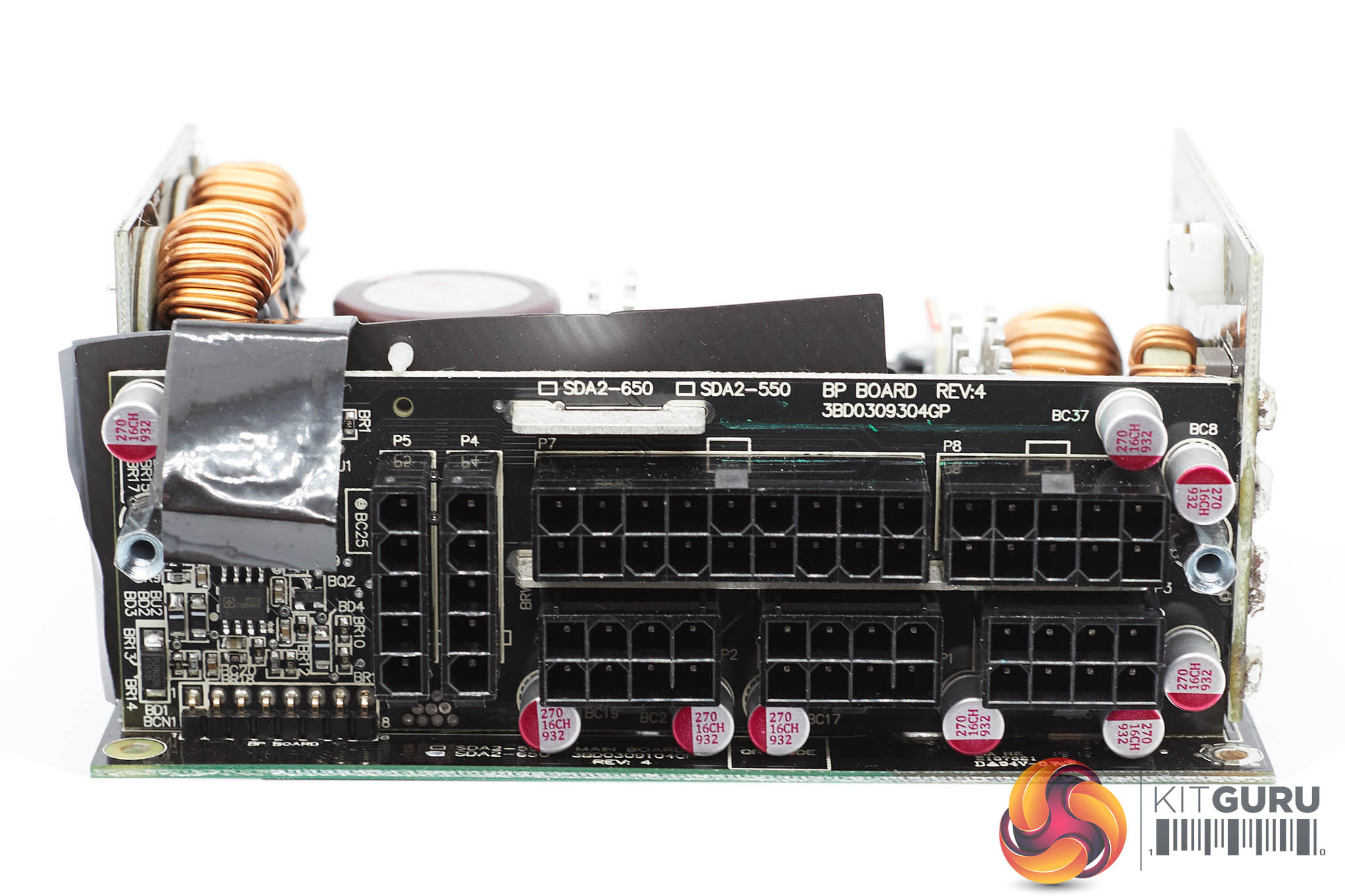 They are using a 3.3V and 5V DC-DC module design to help improve voltage regulation for all rails. We can see there is a new heat sink design for the 12V switching circuitry – which conducts the heat through some thermal pads on the bottom of the PCB – helping to improve cooling. We can see this DC to DC daughterboard is used for both 550W and 650W models.