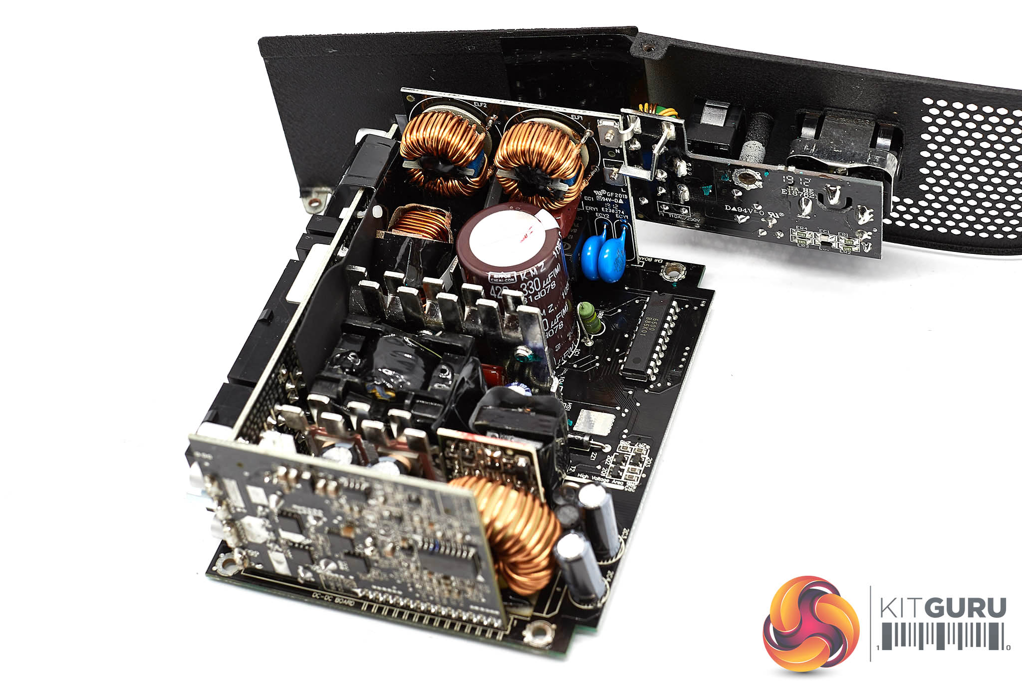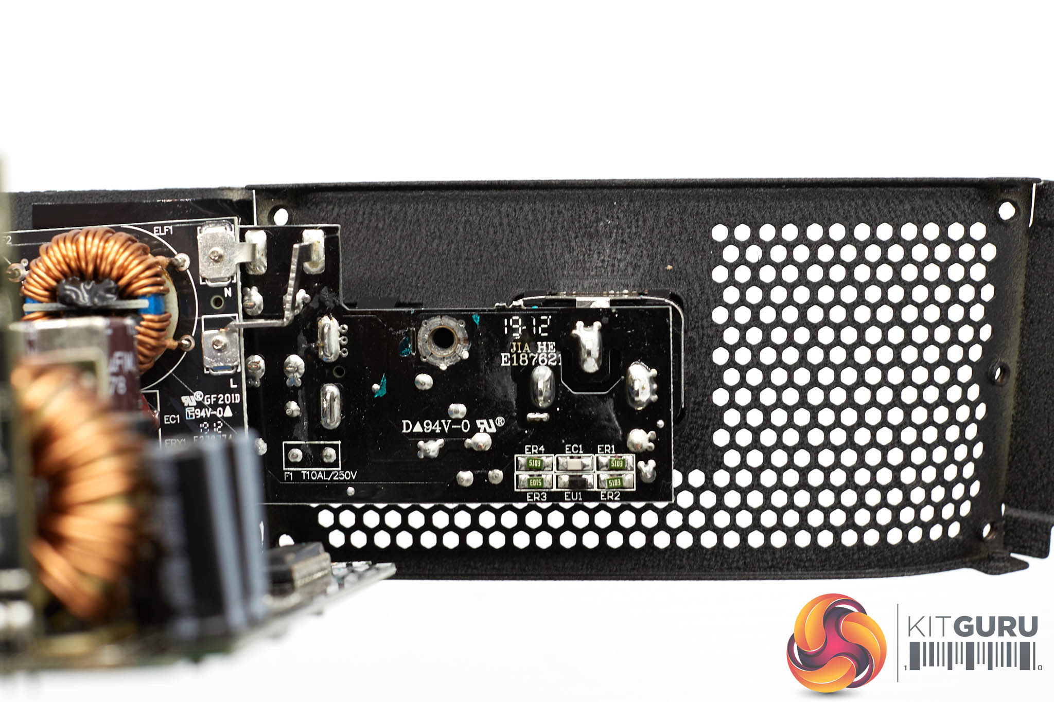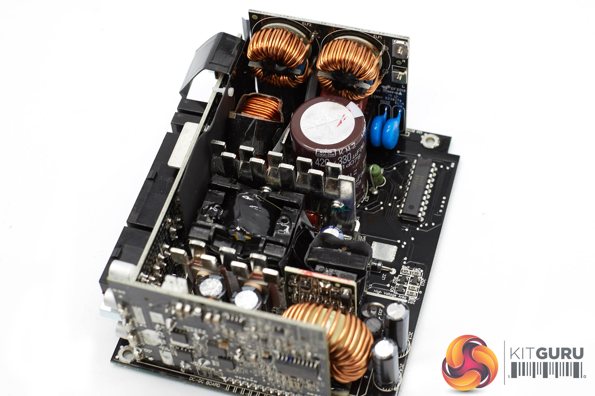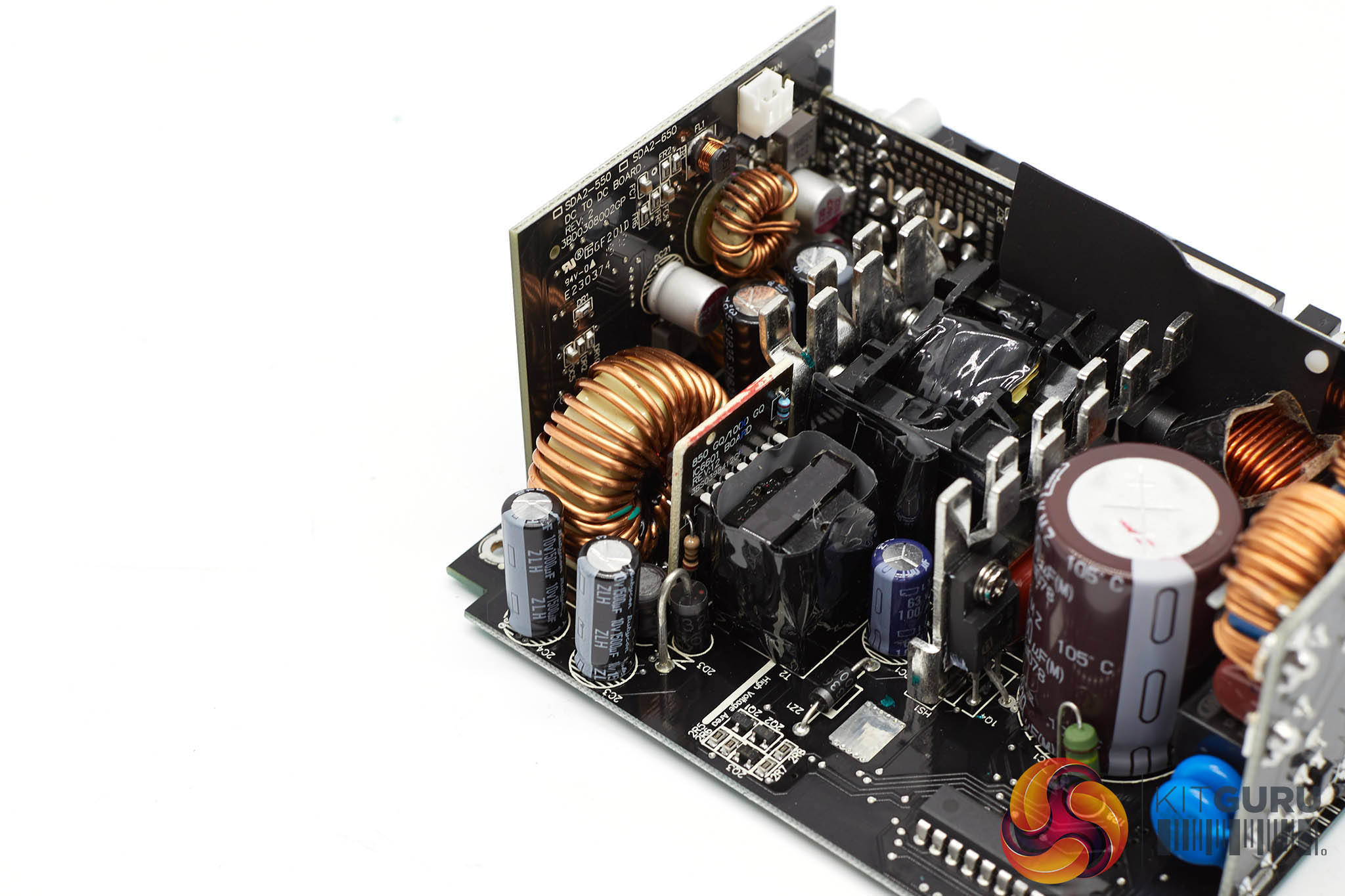 This FSP design has a couple of heatsinks in key positions, to help with cooling. FSP have adopted Japanese capacitors throughout both primary and secondary stages, with the primary hold up cap being a 105c Nippon Chemi Con rated 420V 330uF from the KMZ family. Rubycon are also used in the secondary stages. These are all quality capacitors.