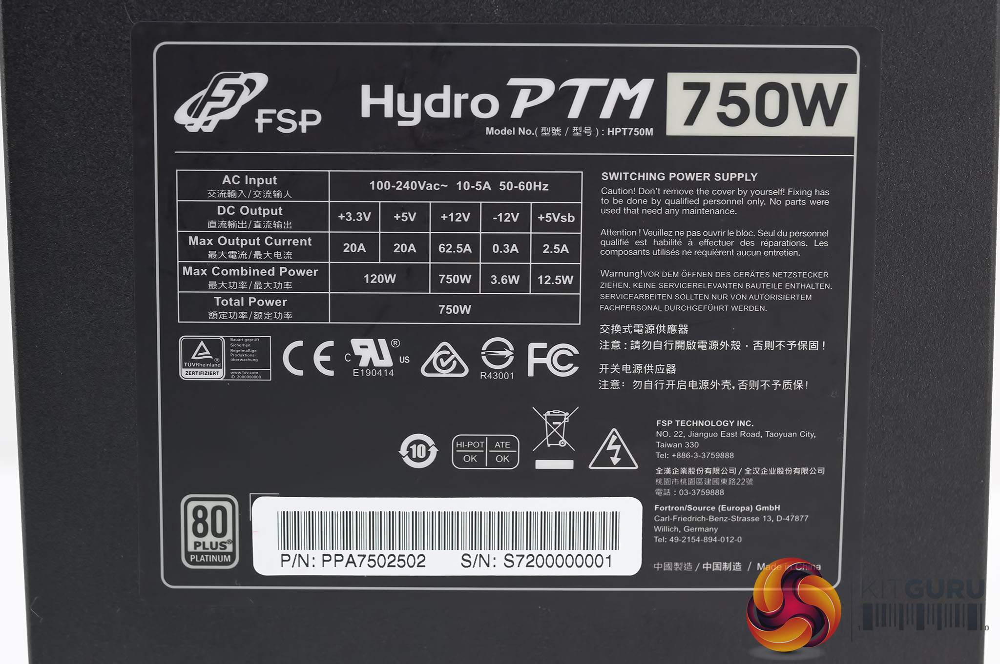 The FSP Hydro PTM 750W power supply is very similar in appearance to the Hydro G we reviewed back in December 2015. It is quite a good looking power supply athough the surfaces aren't attractively pattern embossed or bevelled like the Seasonic FOCUS PLUS we reviewed earlier this week. It is a no frills chassis, but effectively designed. It measures 150 mm (W) x 86 mm (H) x 170 mm (D).