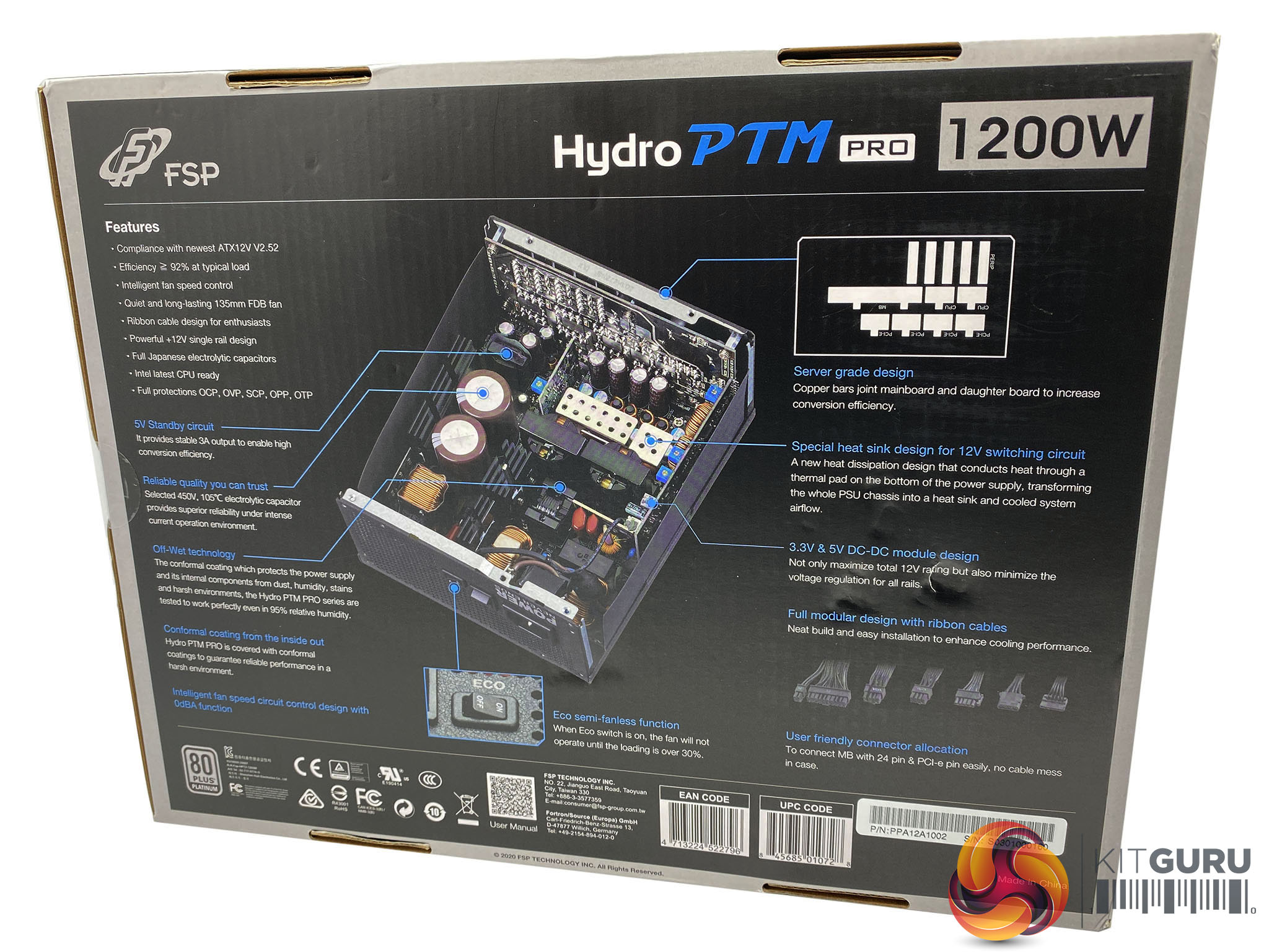 The FSP box artwork is actually really nice, and it's not often I say that. The power supply is shown – with the modular panel at the front. A key list of specs are listed along the bottom, with the Wattage.