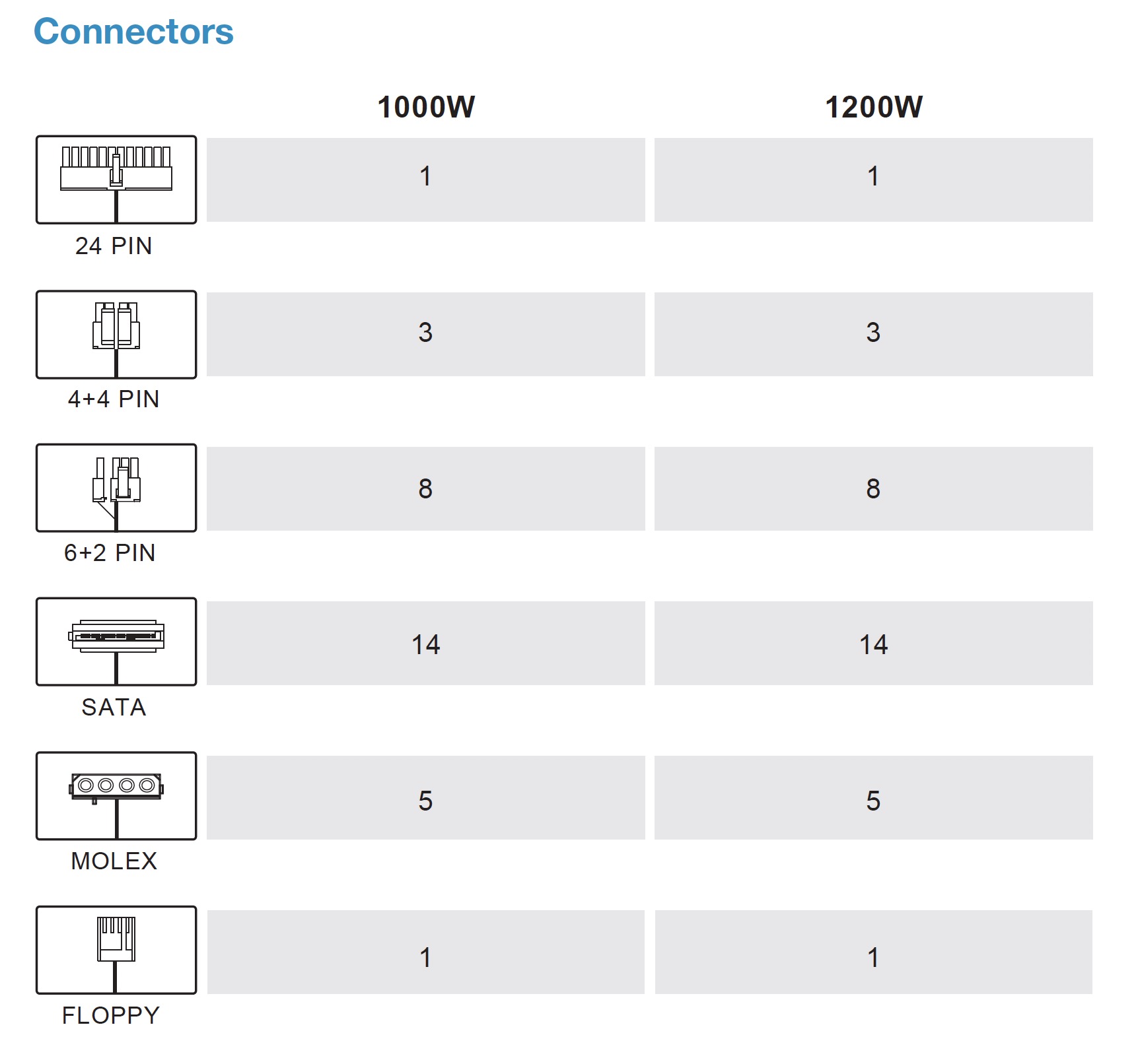 14 SATA cables, and 8 PCI power connectors certainly means you aren't short of possibilities for a new system build. There are also three 4+4 pin power connectors as well for high power draw processors.