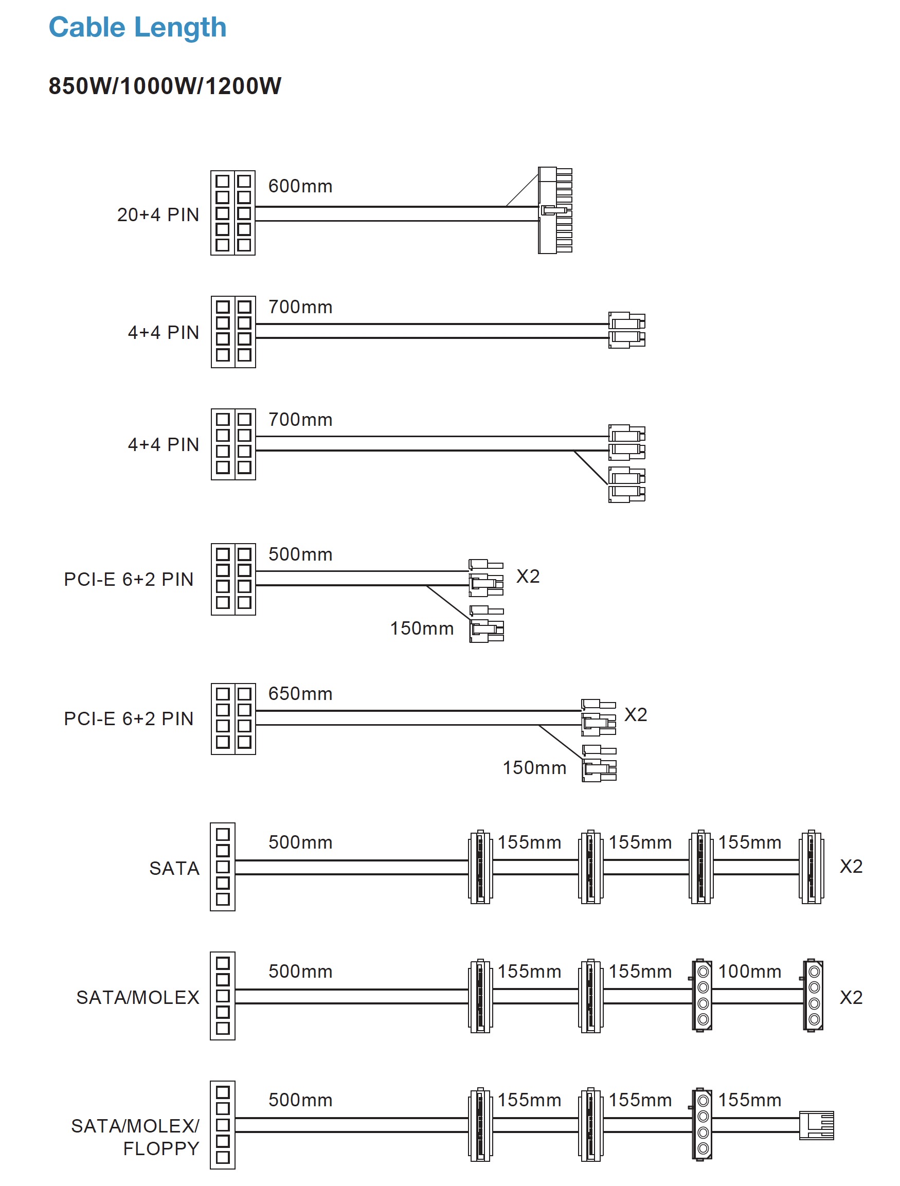 The cables are all ribbon style, to help with routing during a system build. The cable quality is excellent throughout.