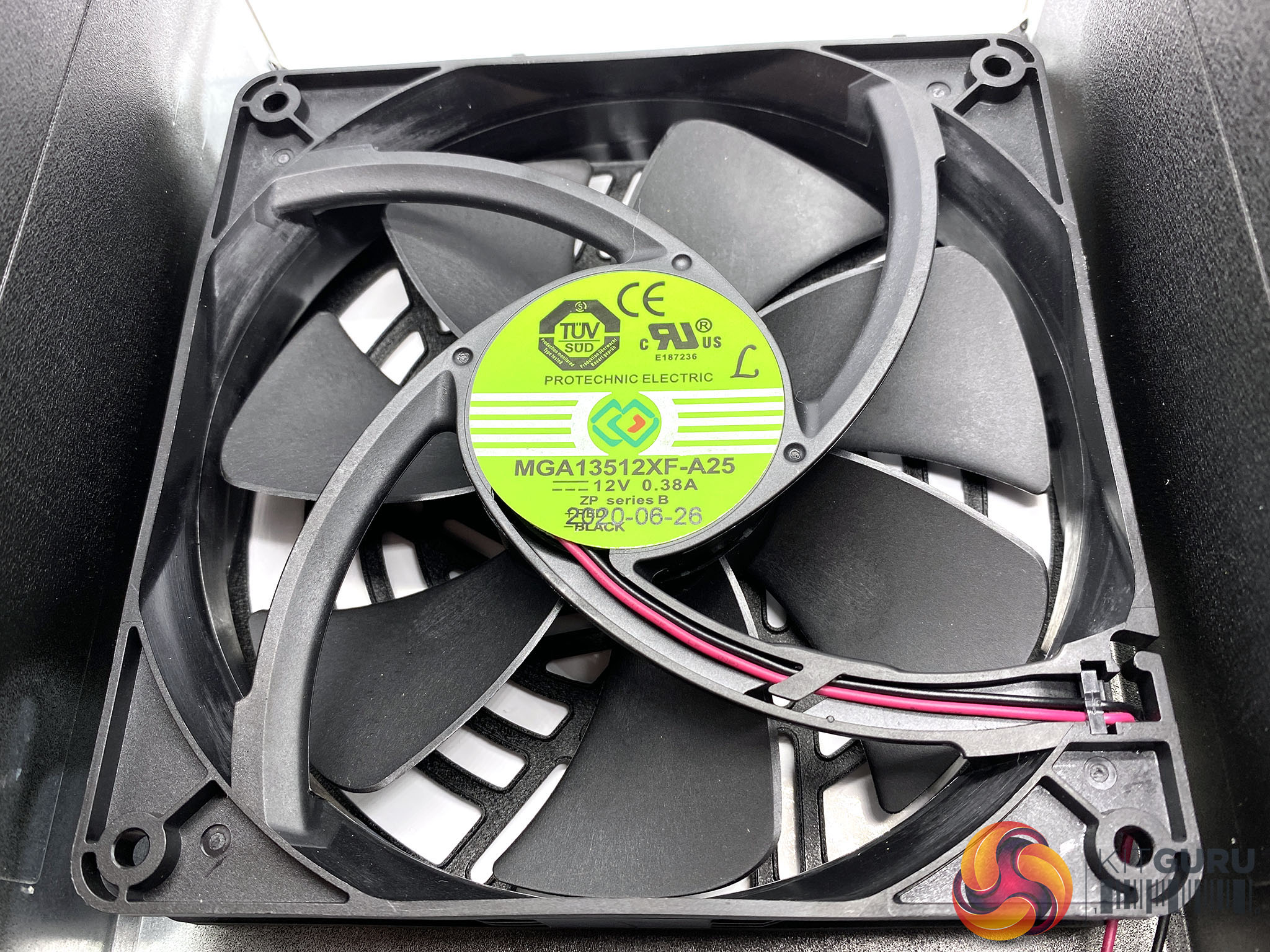 FPS are using a ‘Protechnic Electric' 135mm FDB (Fluid Dynamic Bearing) fan inside this unit. Model ‘MGA13512XF-A25' – 12V 0.38A. We have seen this fan in some units back in 2016. It's a really good fan however, and a proper FDB one too. MTBF is rated at 100,000 hours.