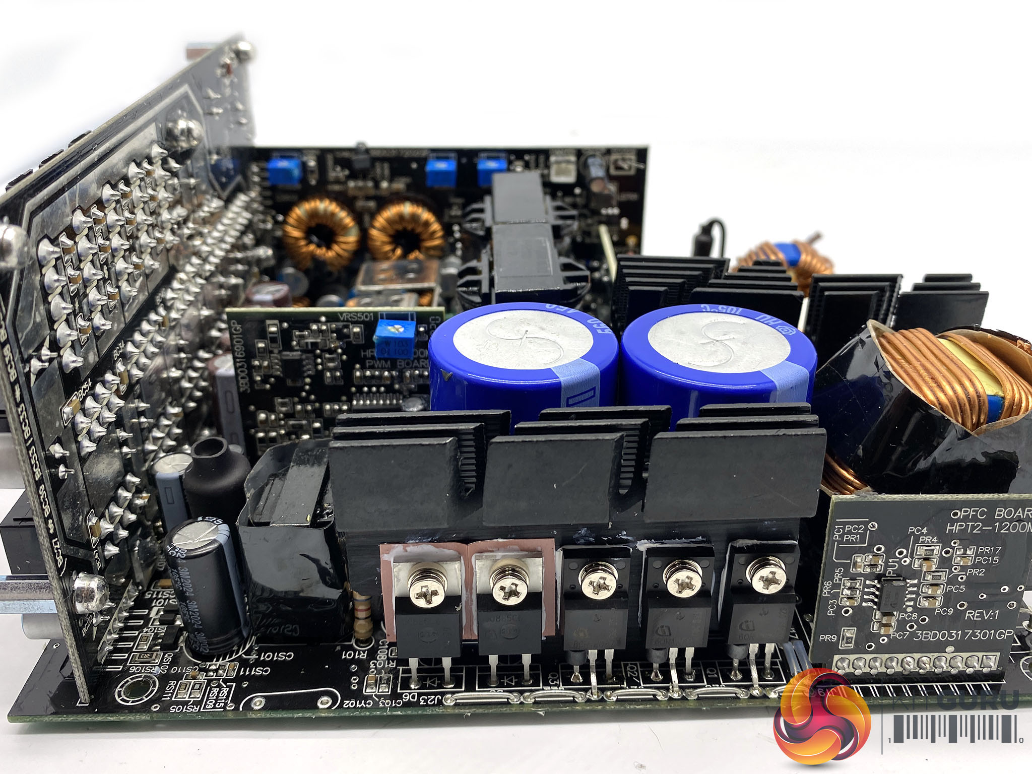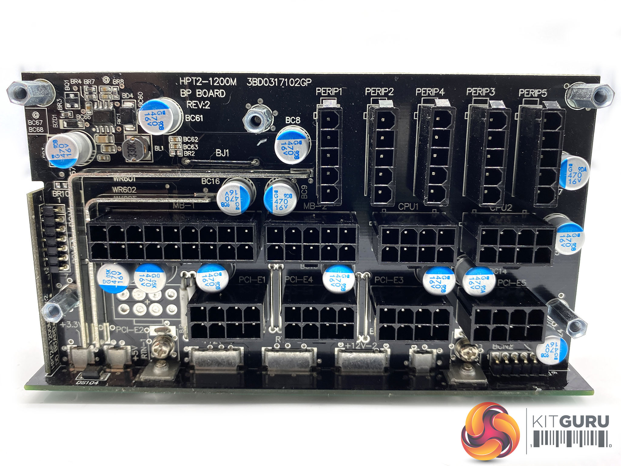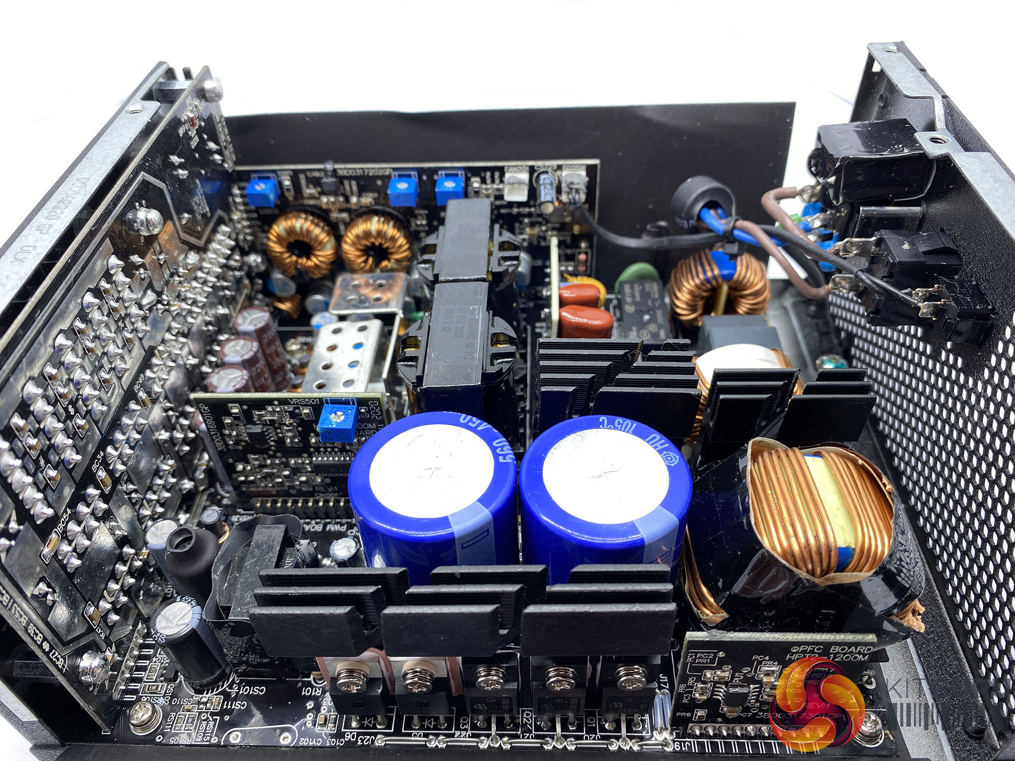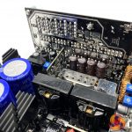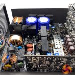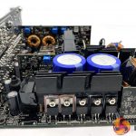 The primary stage capacitors are 105c rated and 450V 560uF for a monstrous combined 1120uF output. It offers OCP, OVP, SCP, OPP, UVP and OTP protections. Like some server PSU designs, FSP are using copper bars between the mainboard and the daughter cards to increase conversion efficiency.