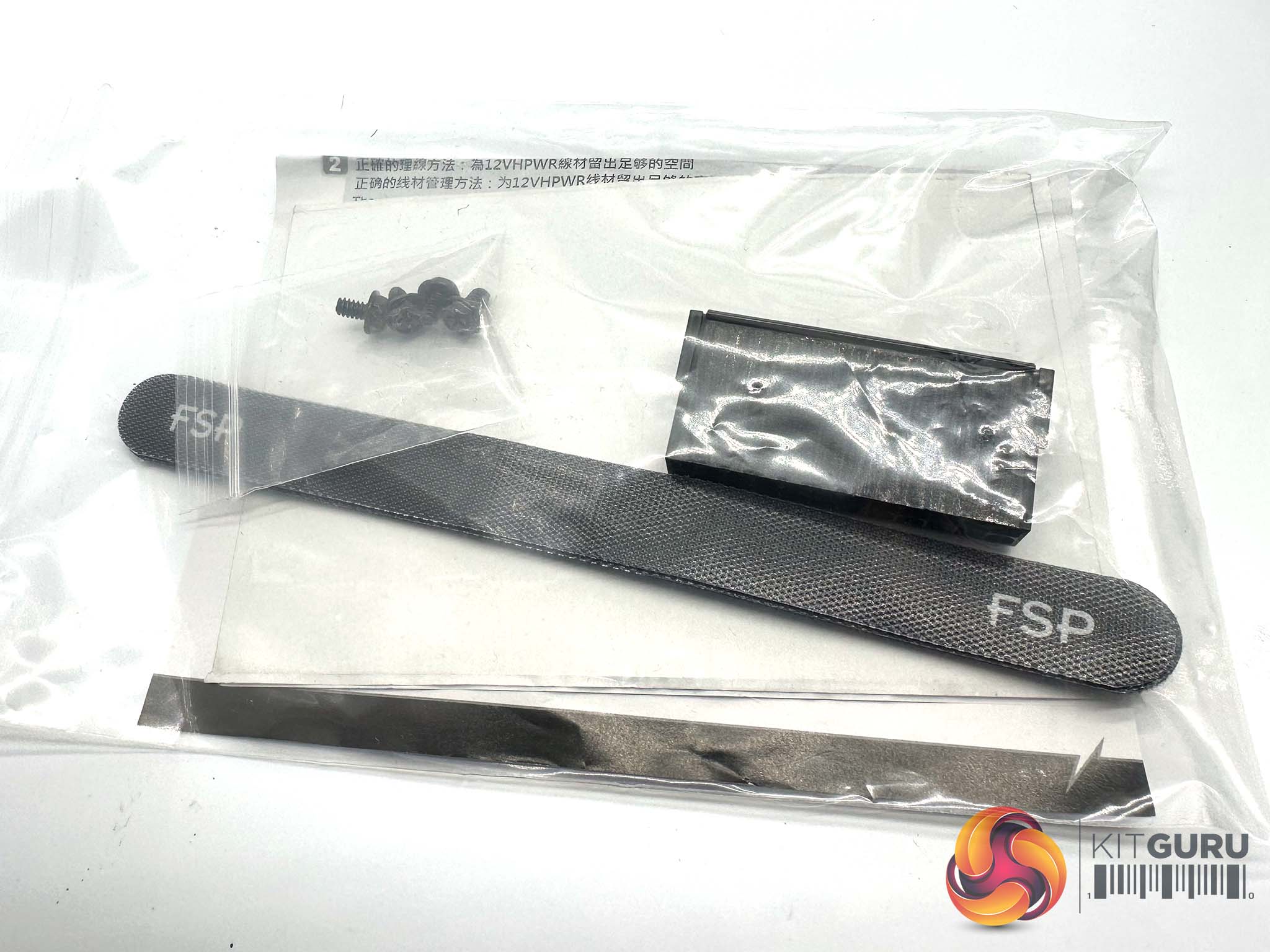 Inside the box is a bag with all the cables inside and some literature on the product. FSP include some cable ties, a tester and mounting screws for the case.