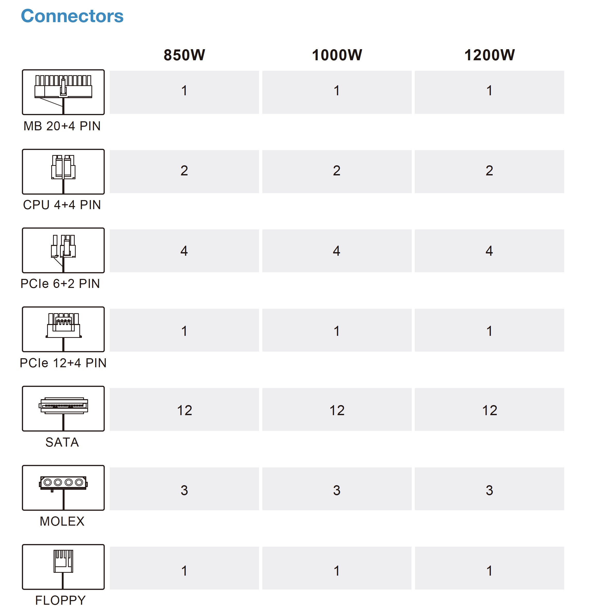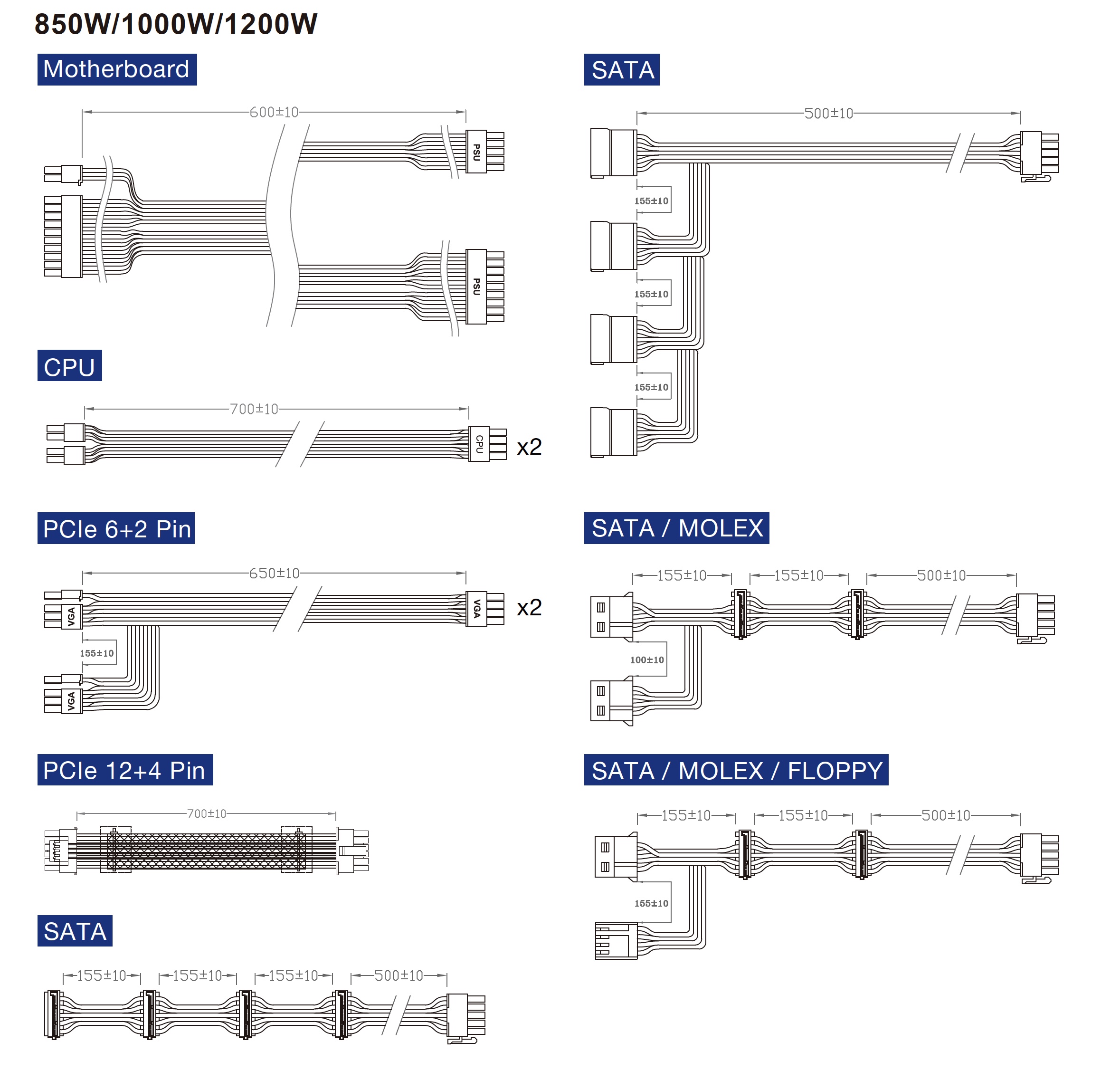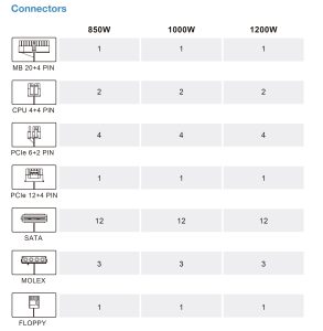 The 850W, 1000W and 1200W units all ship with the same amount of cables – which in reality should be plenty for any high end enthusiast system on the market today.