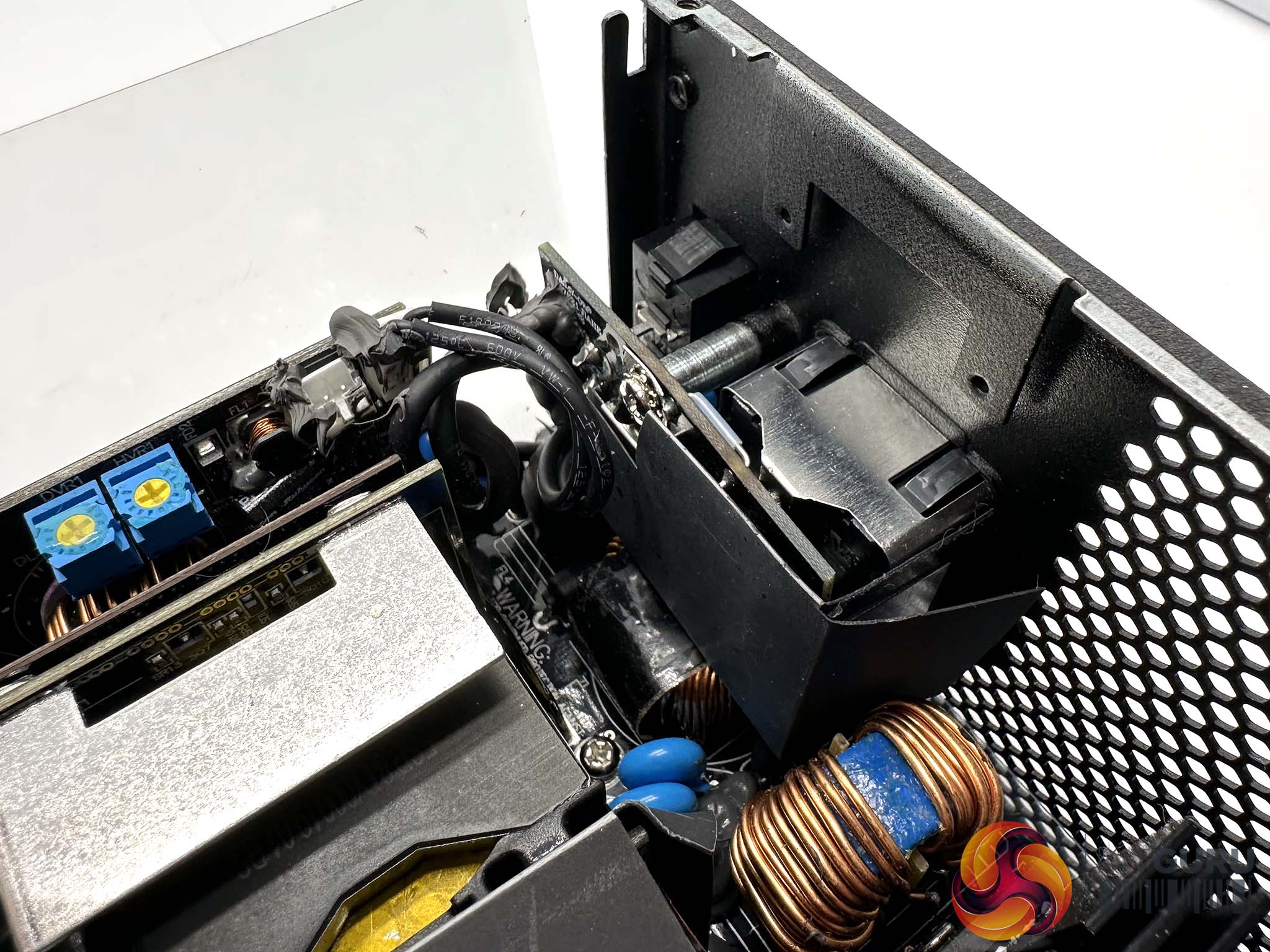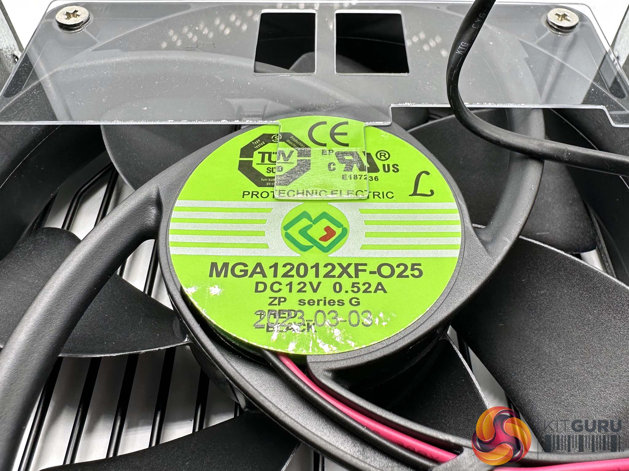 FSP are using a 120mm Protechnic Electric Fluid Dynamic Bearing fan – MGA12012XF-025. This is a fan that FSP have favoured for years – we saw the same fan back in our 2019 review of the Hydro G Pro 850W unit (HERE). This fan is rated 12V 0.52A output. It has proved to be a reliable, well made fan over the years. If needed it can also spin to a maximum high rotational speed of 2,700 rpm under use.