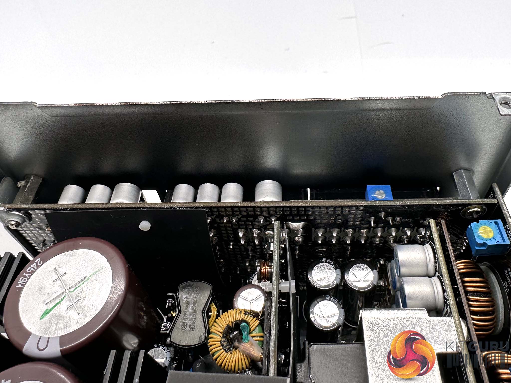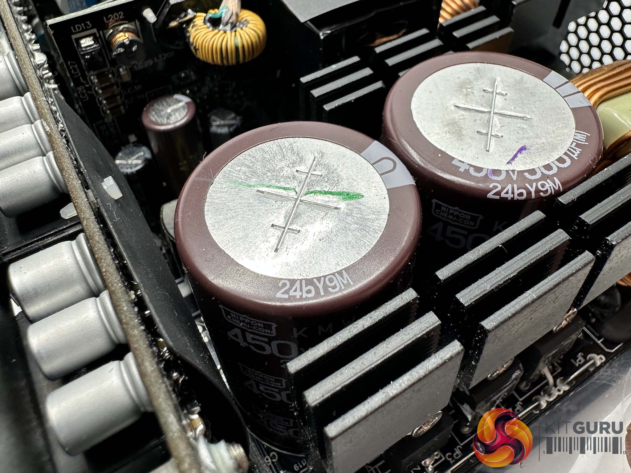 We are happy to see FSP aren't cutting corners and the primary stage is home to two high capacity 450/500uF 105C-rated Japanese capacitors by Nippon Chemi Con. A large heatsink along the edge of the PCB is home to active APFC components.