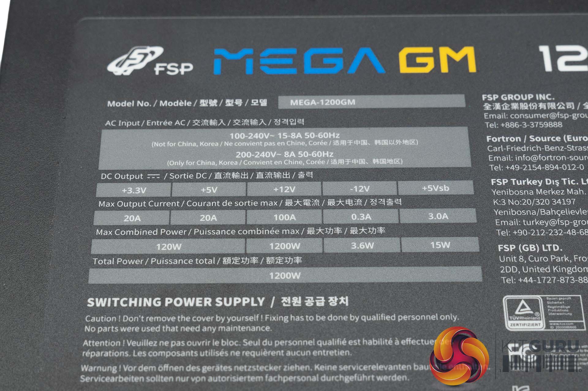 The power supply can deliver 100A on the +12V rail, with 20A on the +3.3V and +5V rails.