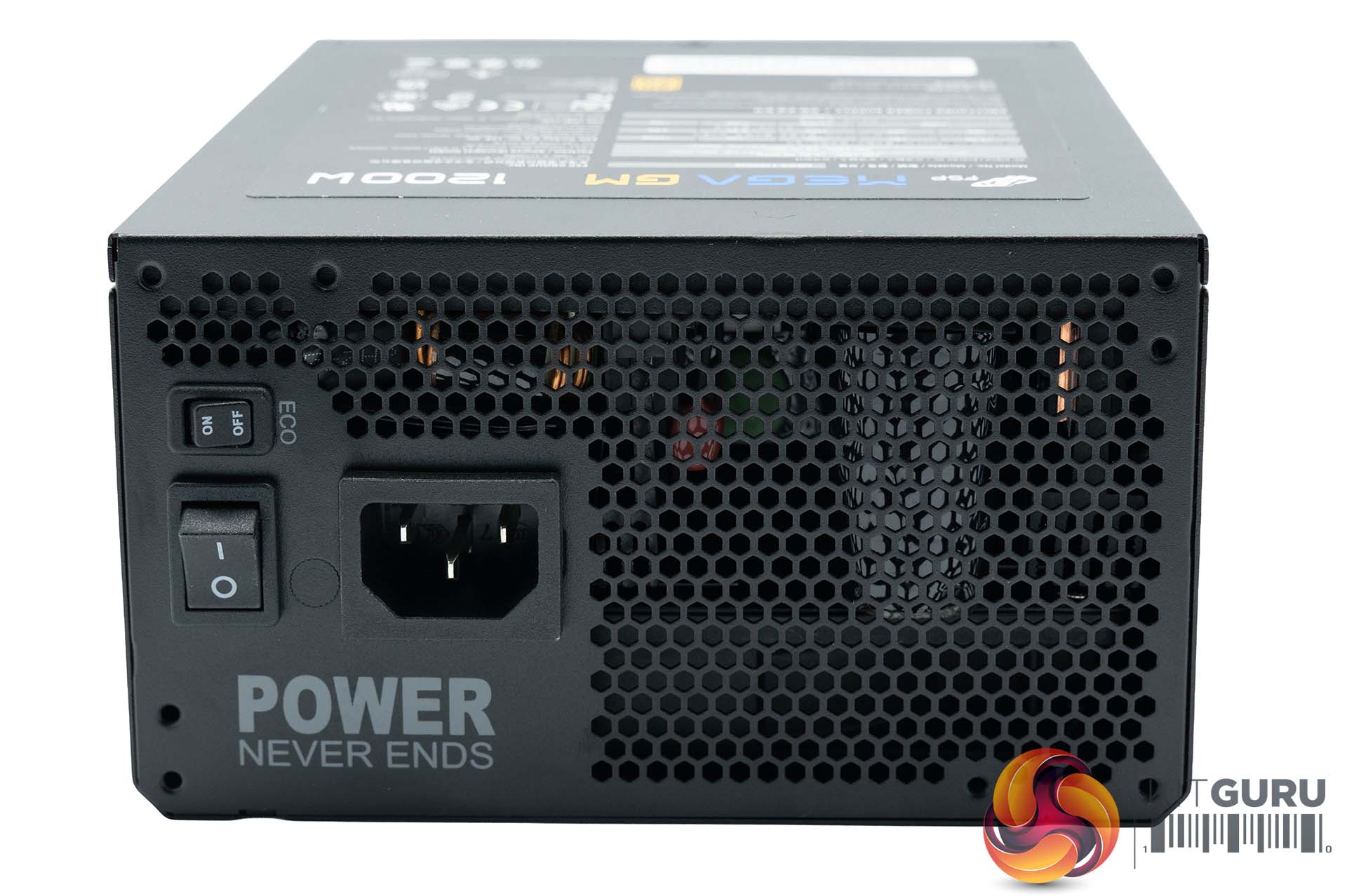On the side of the unit we find a vented panel to aid with airflow, alongside a power connector, power button and ECO semi-fanless control switch (a mode to turn the fan off at idle and lower power demands).
