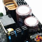 The transient filter is comprised of 2x Y Caps, 3x X Caps, 2x CM chokes and 1x MOV. We are happy to see FSP using quality Japanese capacitors in both primary and secondary side. The two main primary stage capacitors are 105C-rated Japanese caps from Nippon Chemi Con, rated 420V 680uF and 330uF for a total of 1010uF.