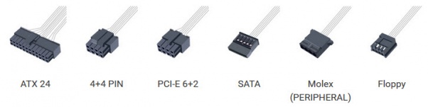 - SATA/Molex cable at 450mm + 155mm(x4) (2 molex and 2 SATA headers).