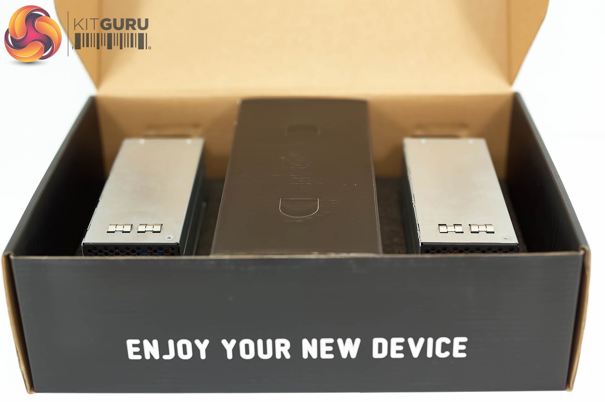 One of the boxes contains the individual power supplies which fit inside the ATX chassis (in the other box). The little black box in the centre contains some accessories.