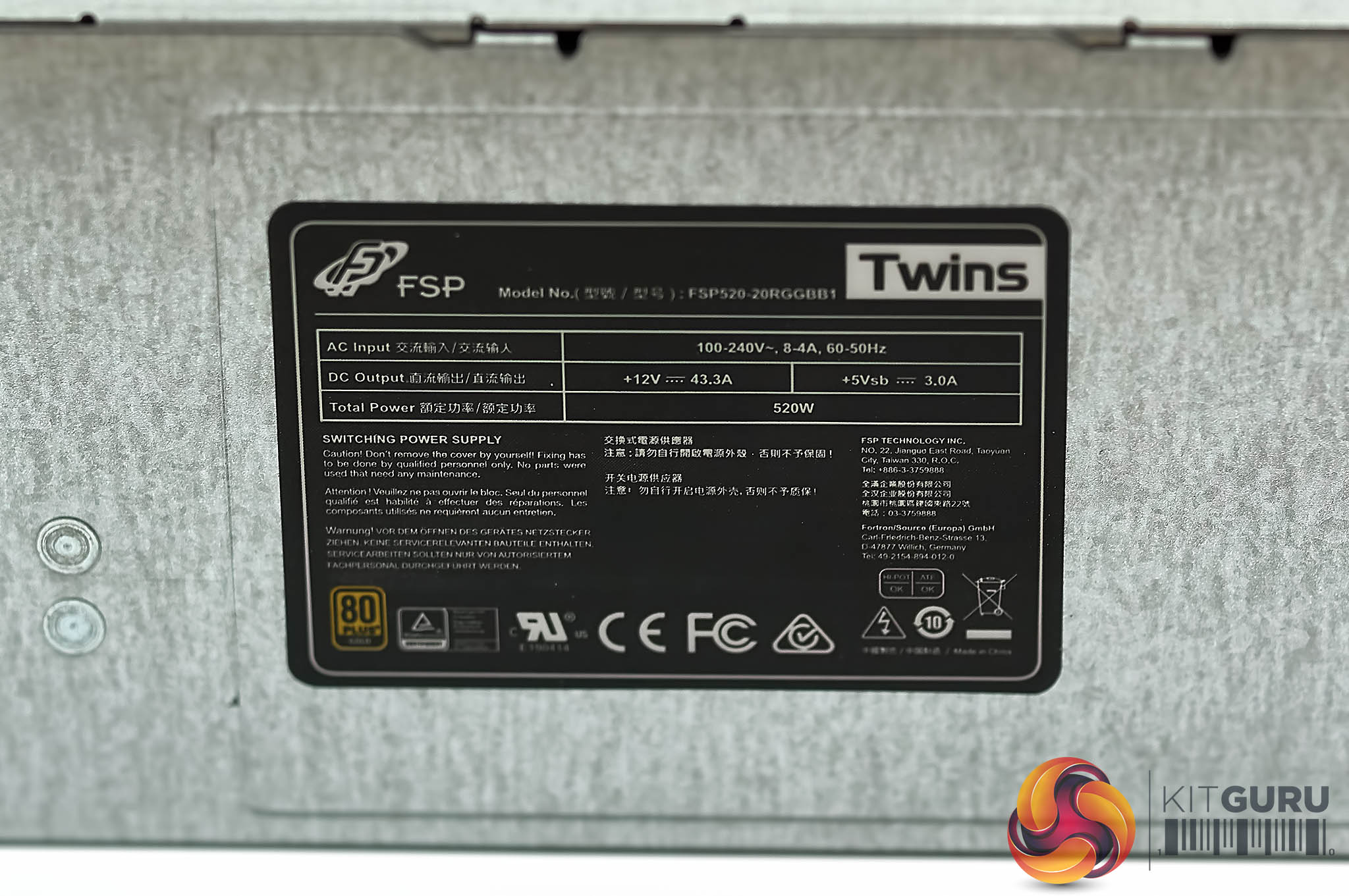 Each FSP power supply can handle 520 watts at a 50c rating and they adopt a single +12v rail at 43.3A which translates into 519.6W). The modular supplies incorporate a +5VSB output as well.