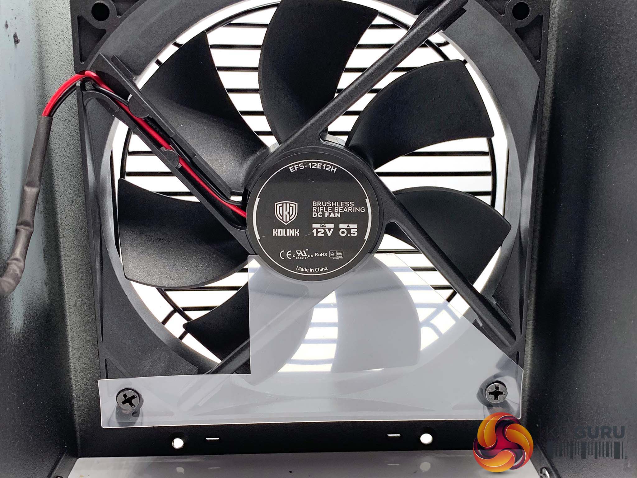 Kolink are using a brushless rifle bearing fan (Model EFS-12E12H). I have actually seen this fan before and while its not clear in the picture, its actually made by Chinese company EVERCOOL.