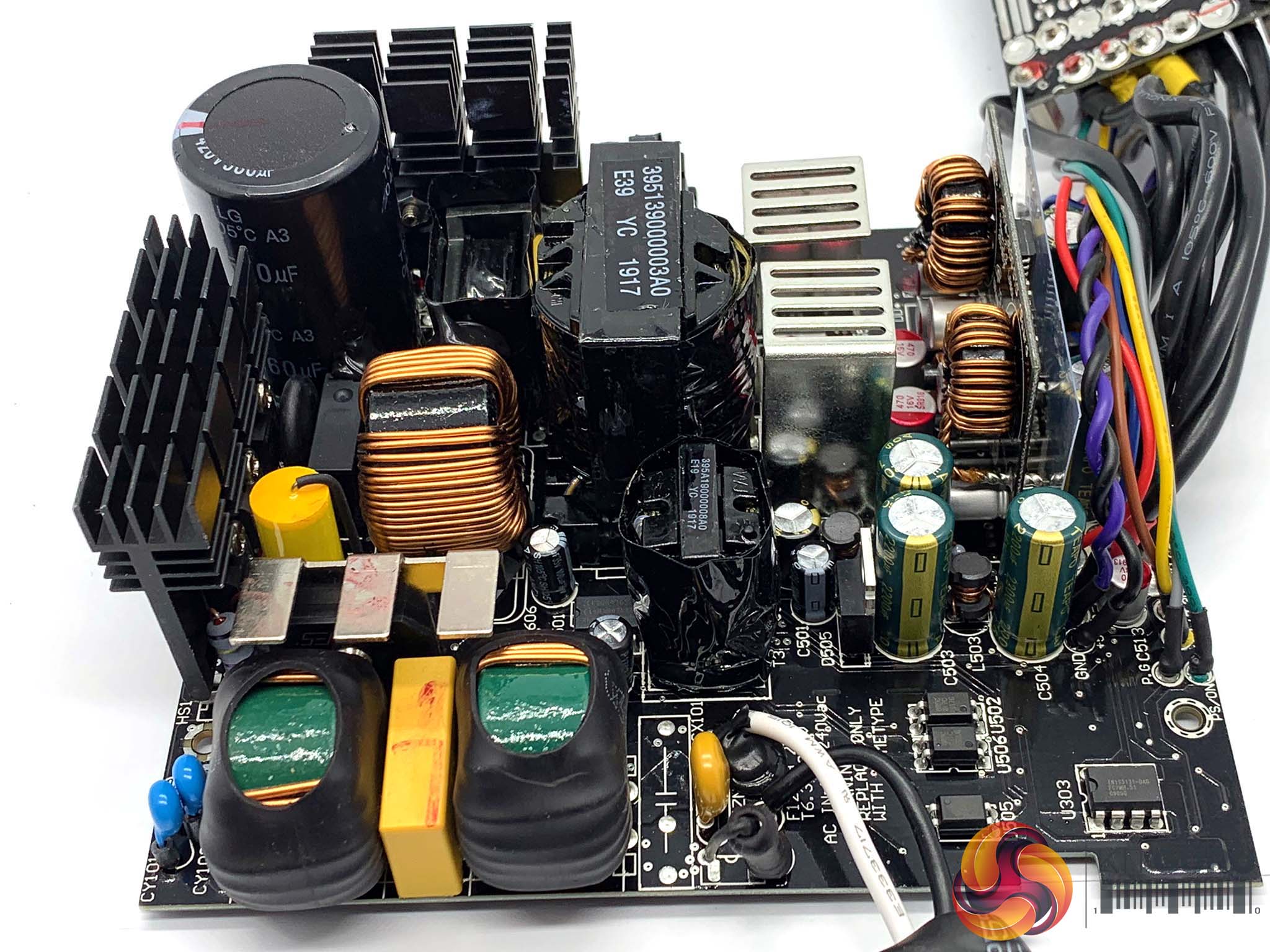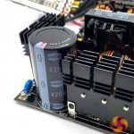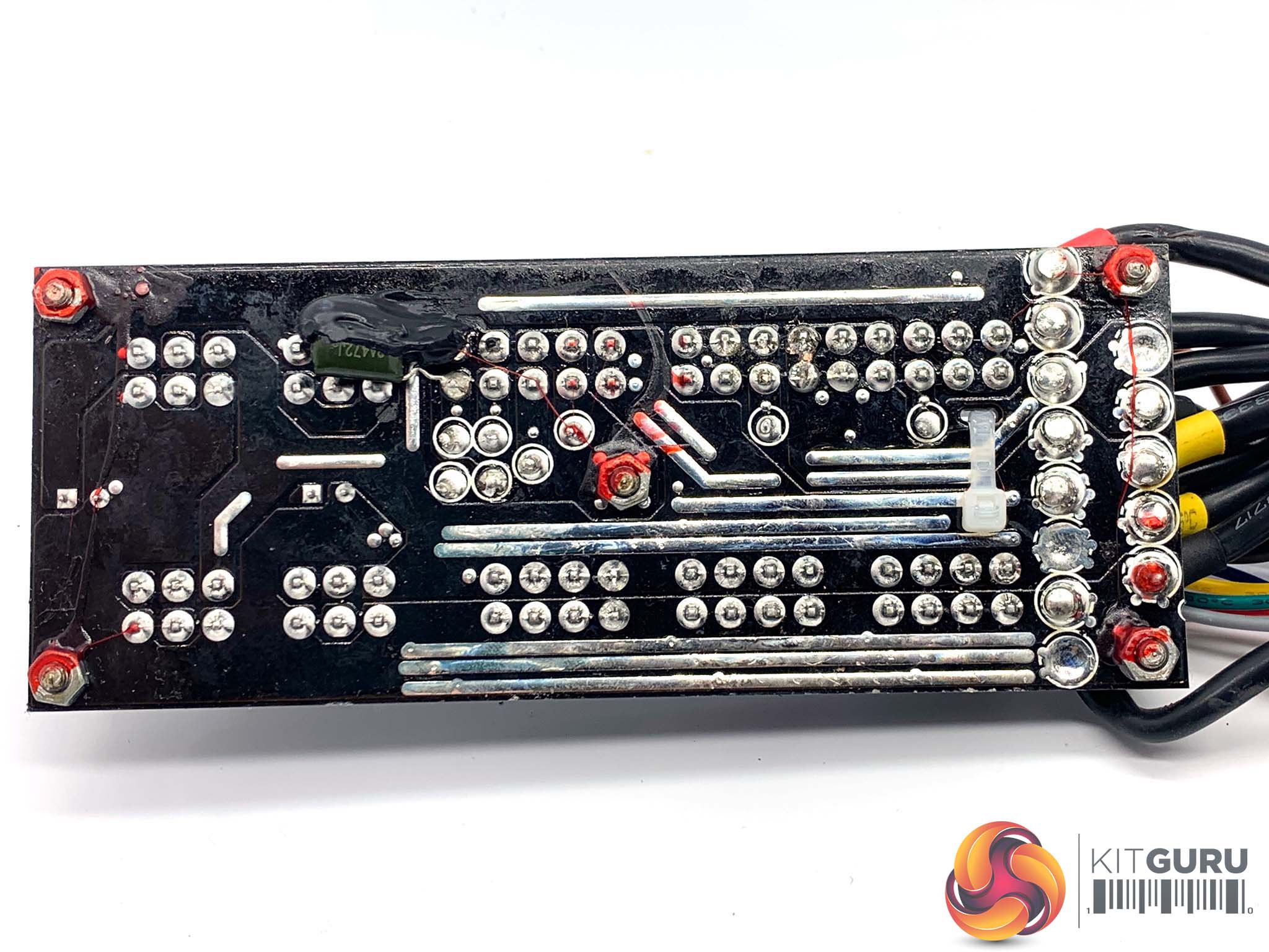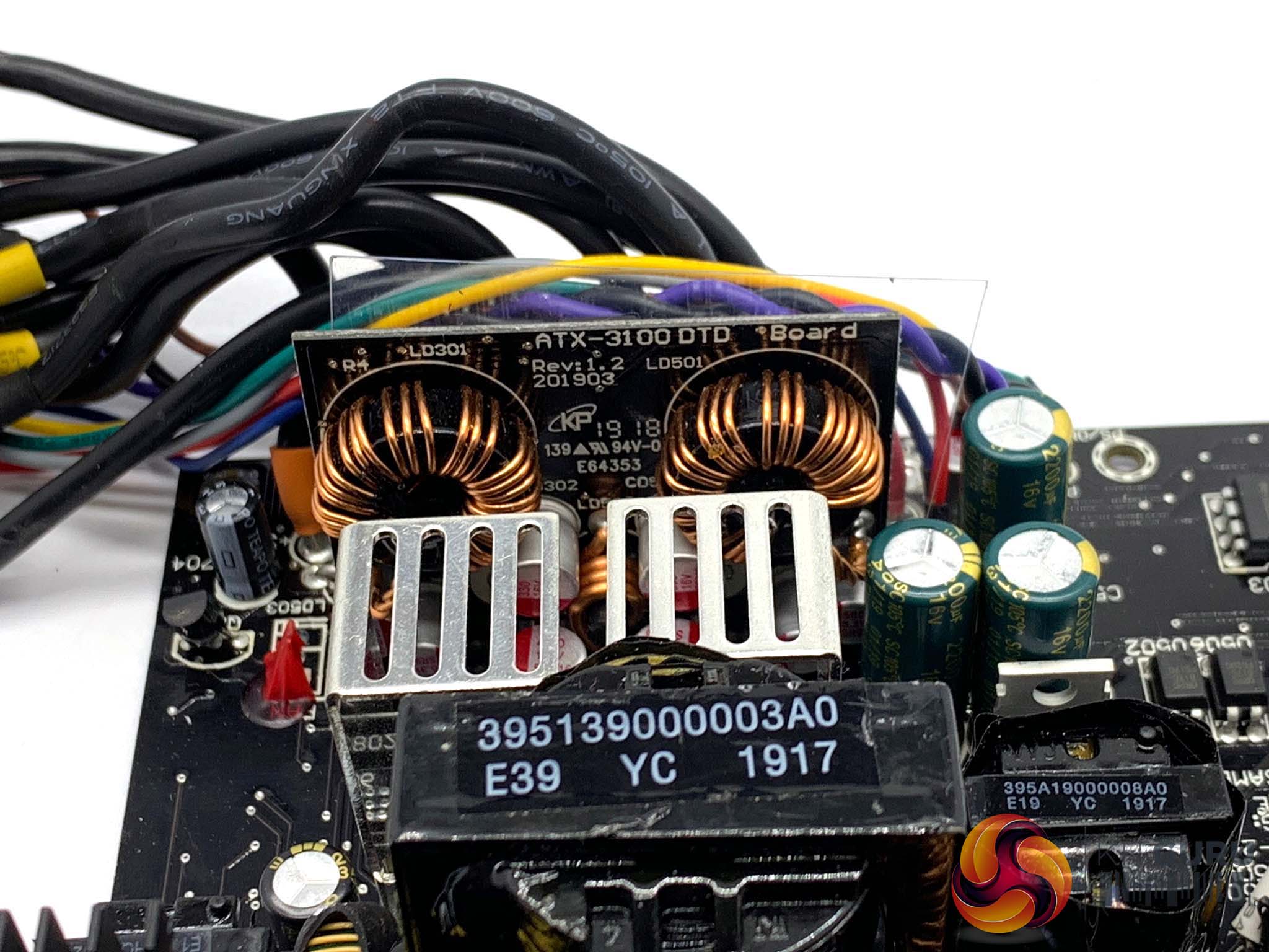 This Kolink developed design is using Teapo capacitors, a cost effective Chinese brand I have had bad experiences with in the past. Some people have told me their engineering processes are improving all the time, and to be honest at this price point I had certainly not expected to see Japanese capacitors inside the power supply. The primary hold up capacitor is at least rated 105c (rather than 85c) – 420v 560uF. Kolink told me that may rotate between Teapo and Elite capacitors with ‘no guarantee between the two'.