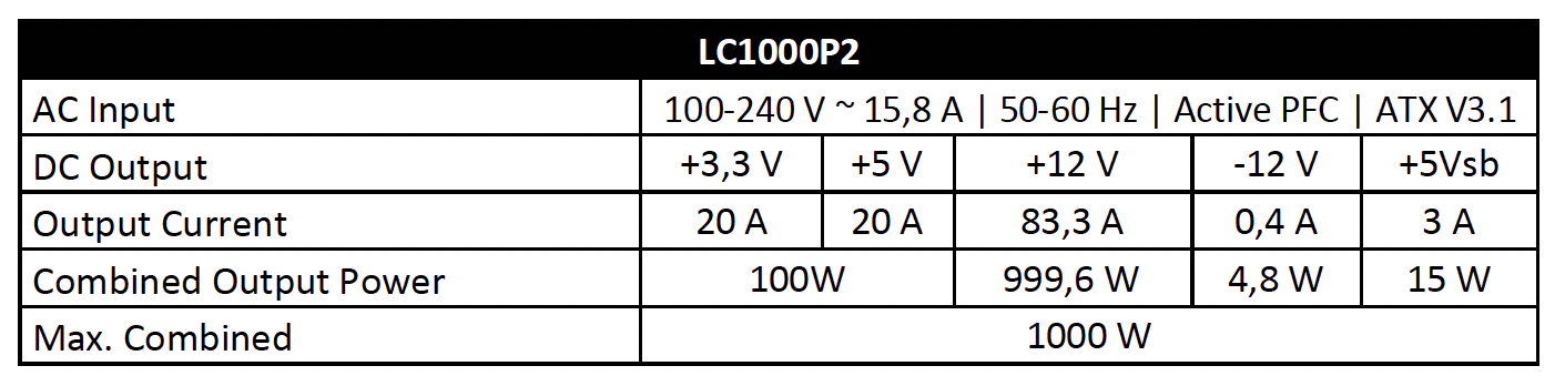 The LC-Power LC1000P2 is finished to a reasonably high standard with colour neutral accenting on the name and 80 Plus Platinum badge. A lot of systems hide the power supply now from view anyway, but at least this one will suit any colour themed system build if it is on show.