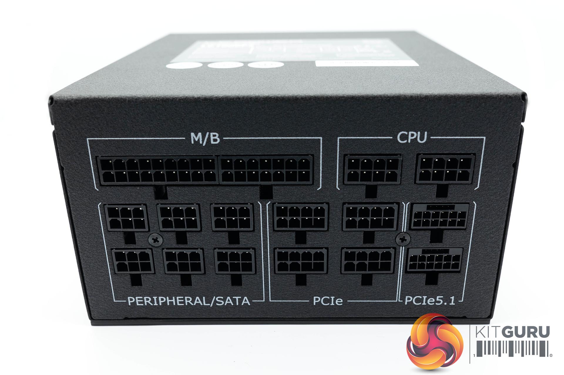 The modular side is split into three rows of connectors, all clearly labelled for ease of use during the installation phase. The power side is home to the power switch, cable connector, and a large vented panel to help with airflow.