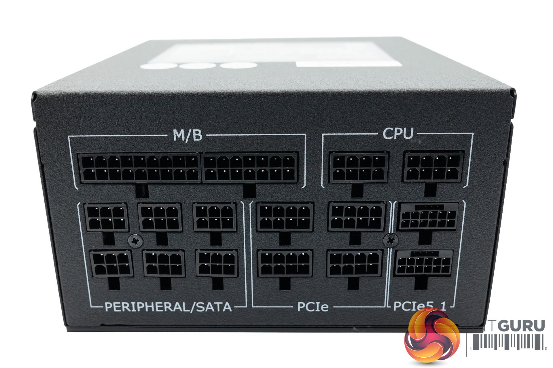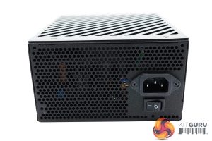 The modular side of the power supply is split into three rows, all labelled for ease of routing during the build phase. The other side is home to the power connector and switch, with a vented panel to aid airflow.