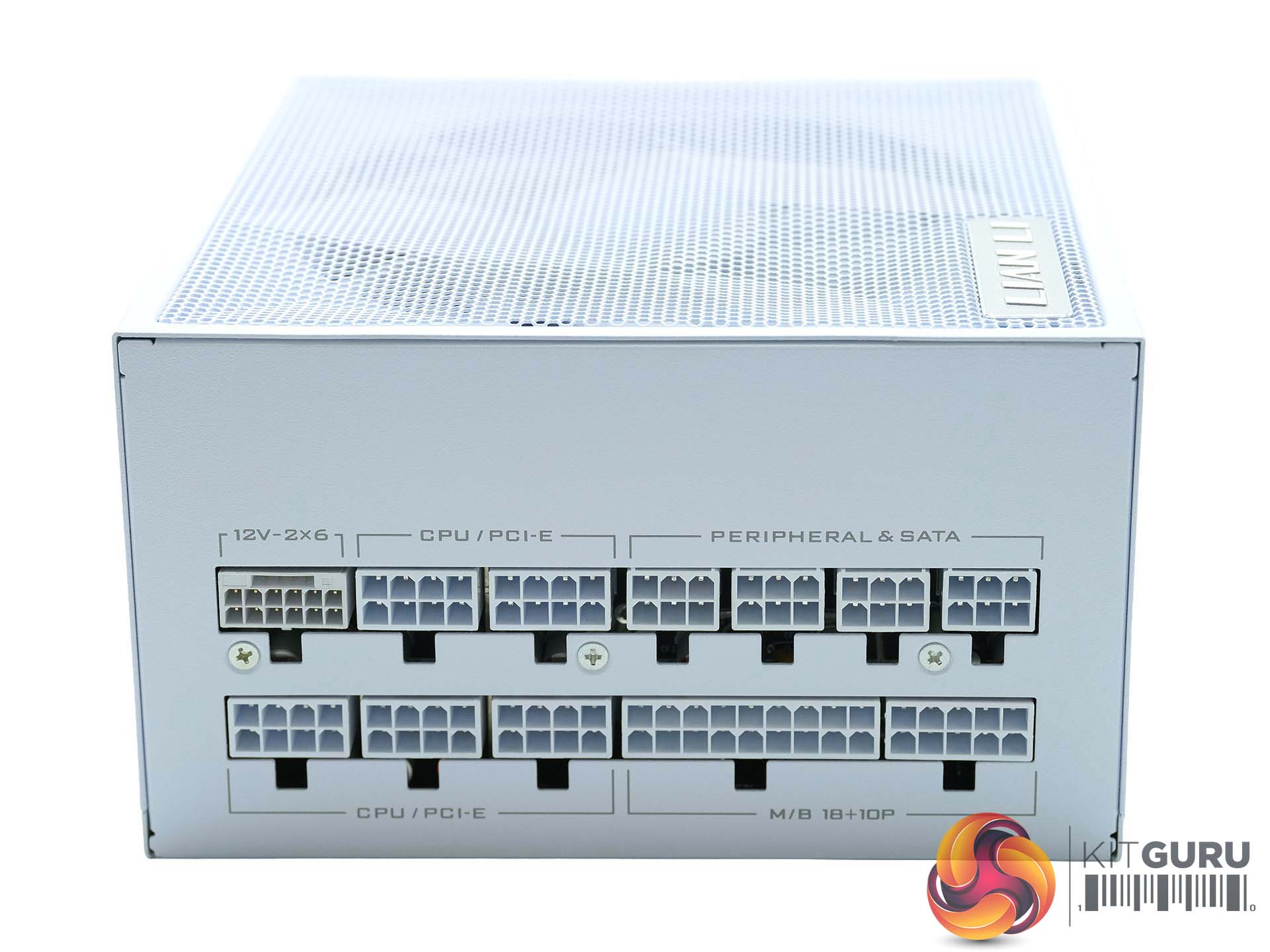 The modular side of the unit is split into two rows, all clearly labelled for ease of use during the installation phase. The 12V-2×6 socket is coloured a little differently top left in the image above.