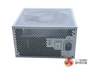 The power side of the supply is home to a power connector socket, a power switch and a zero fan mode switch. Lian Li don't actually call it a ‘zero fan mode switch' as they refer to it with the purist term of ‘fan ON/OFF'. Basically their internal graphs show that in ‘fan OFF' mode, the fan is disabled completely until around 400 watts when it will switch itself on. This will ensure that in lower power demand situations the fan will remain disabled, lowering noise output.