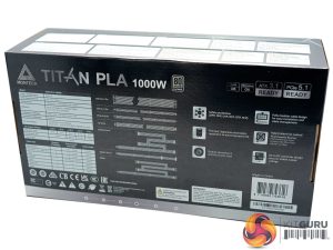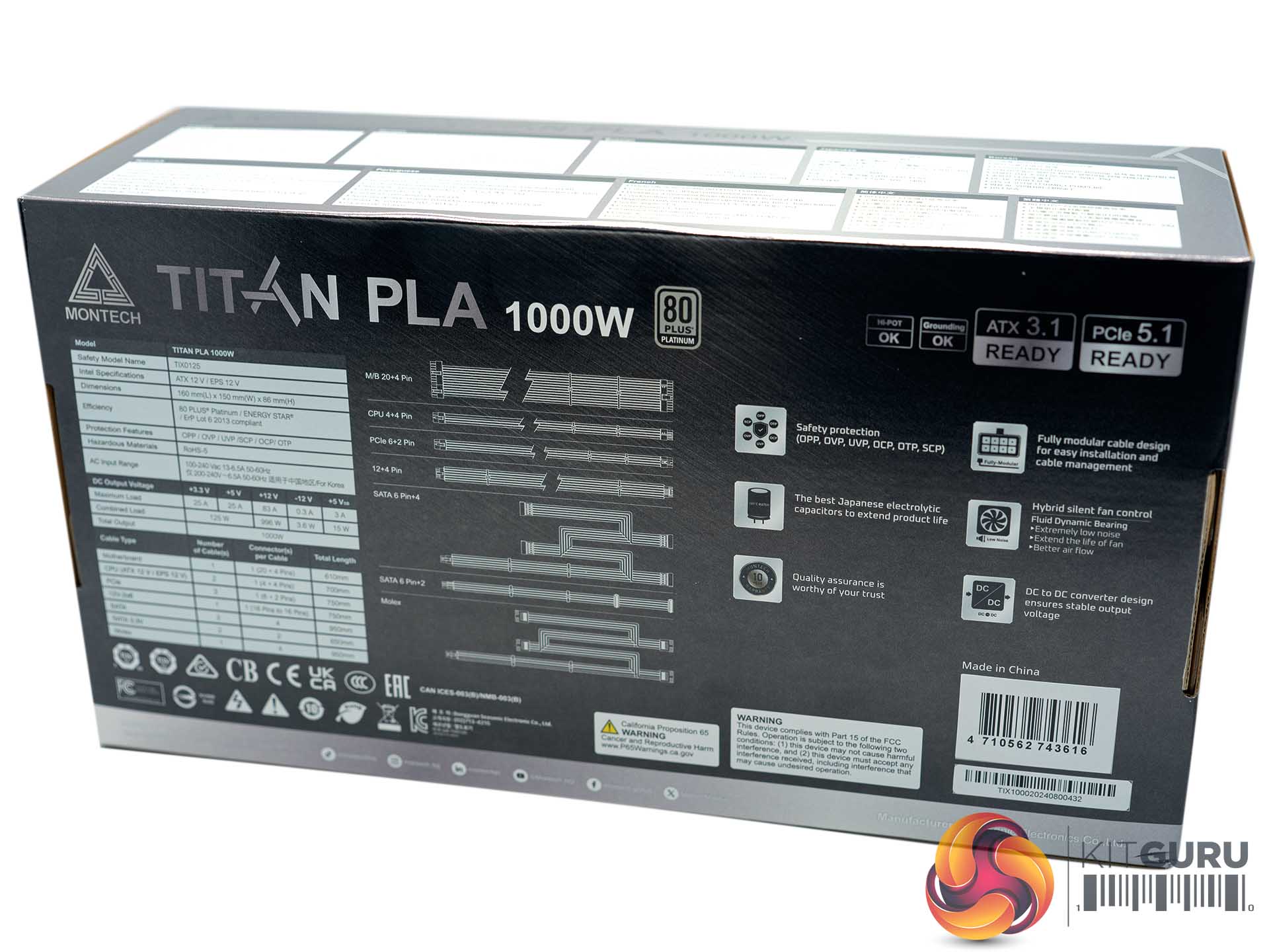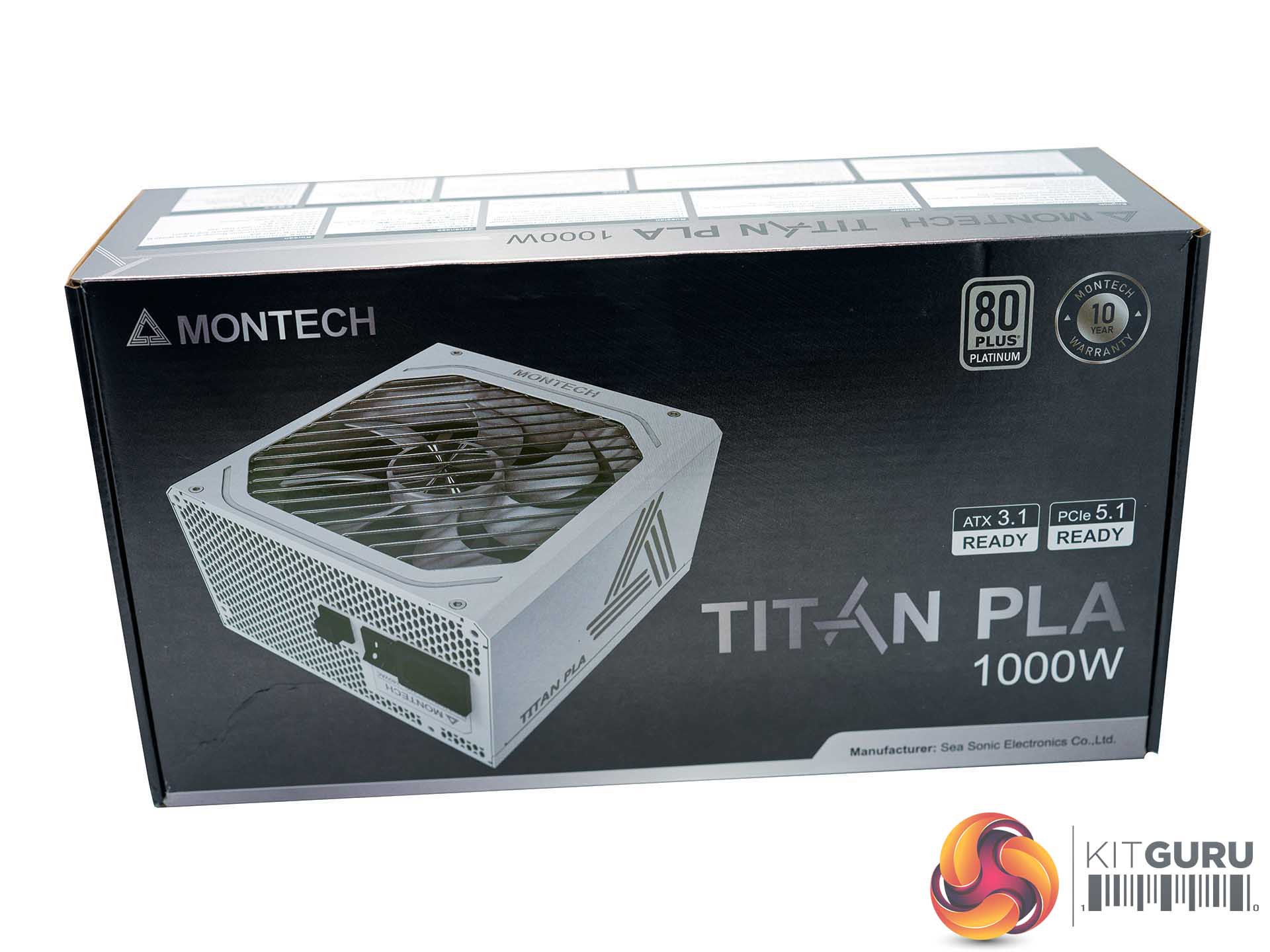 Montech ship the Titan PLA 1000W in a black box with a high resolution image of the power supply on the left.
