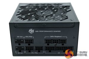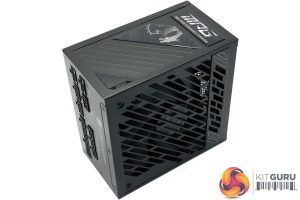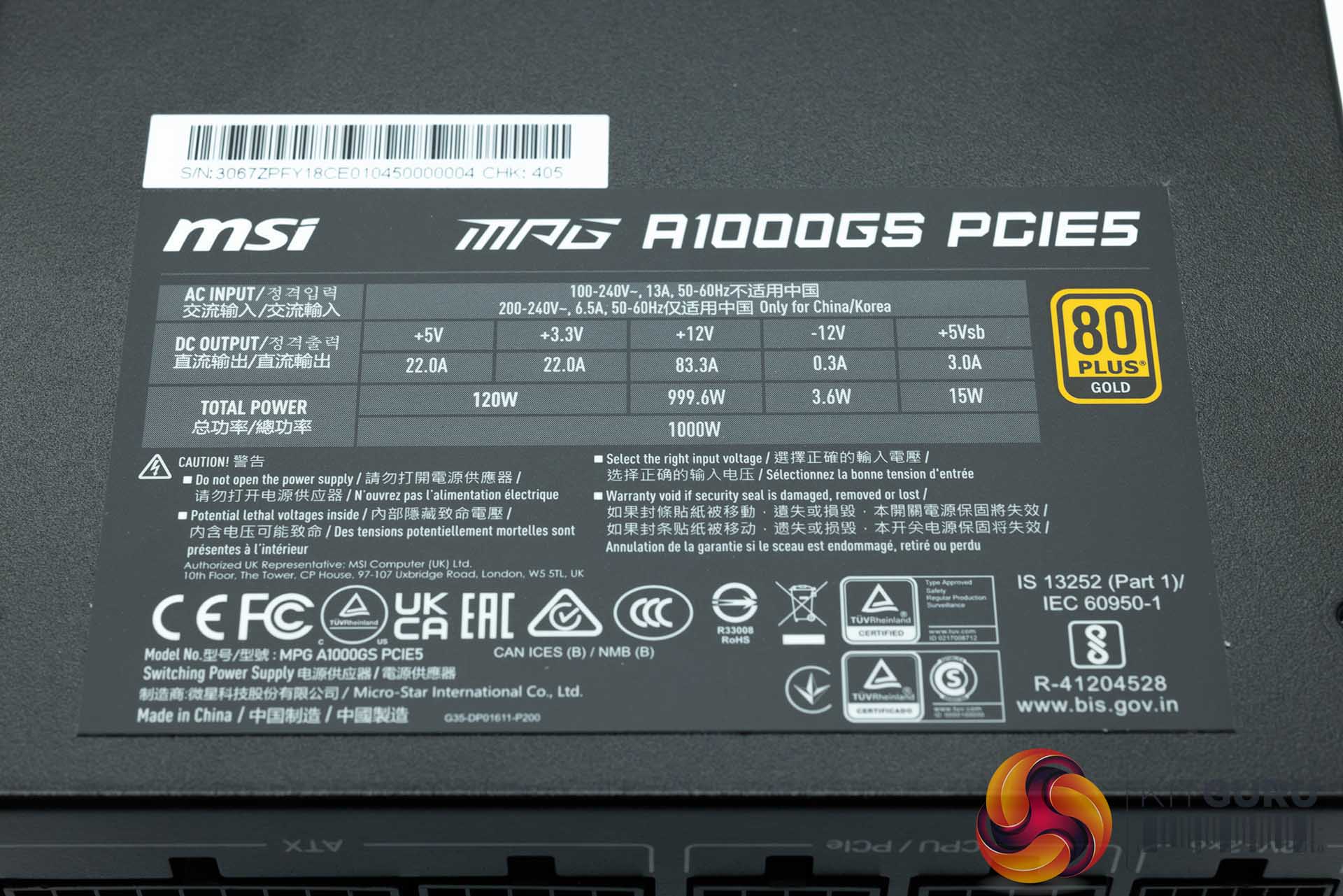 The MSI MPG A1000GS is a compact power supply, measuring 150x150x86 mm. The sides of the PSU have the logo of the MSI dragon mascot in place, along with the ‘MPG Performance Gaming' logo. If you like your power supplies clean and simple then this might not appeal to you, but in reality most system builds now hide a power supply behind a shroud.