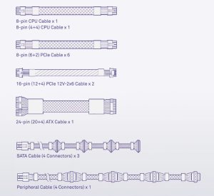 Inside the box is a purple bag with all the cabling and accessories. The power supply itself is protected inside a white felt bag with foam pads on either side.