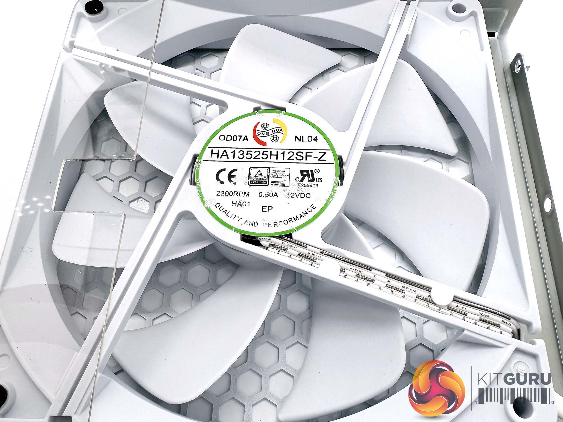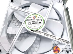 We like to see Hong Hua Fluid Dynamic Bearing (FDB) fans in power supplies. FDB fans are great for power supplies as they combine great performance against reasonable costs. This is the first white one I think I have seen! This fan is a HA13525H12SF-Z rated at 2,300rpm, 0.5A 12 VDC. This series of fans is used quite often in higher quality units we test.
