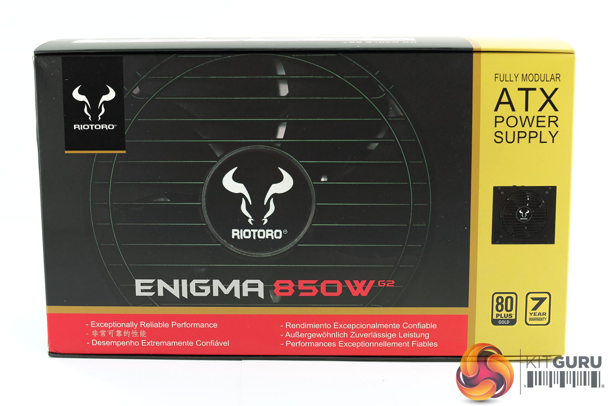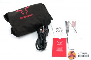 Riotoro box artwork is certainly eye catching, in bright red and yellow with an image of the fan grill taking centerstage. We questioned the 7 year warranty terms detailed on the front of the box and we were told that it had been increased to 10 years. Future artwork on these boxes will be revised.
