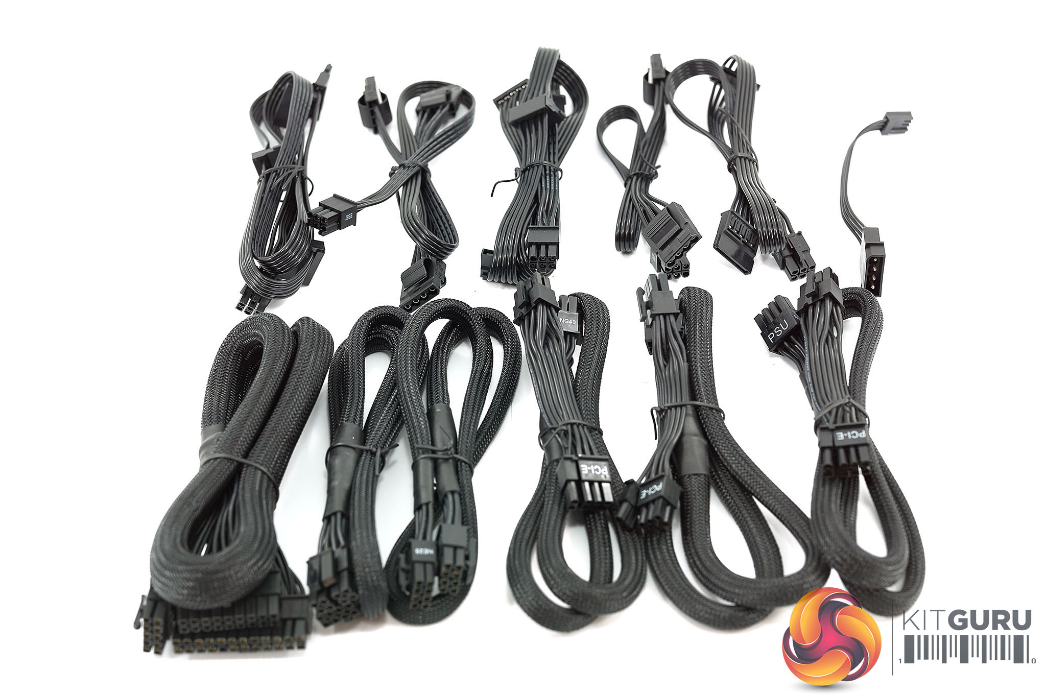 In the same fashion as the Seasonic Focus Plus Gold 850W unit we reviewed in August – the cabling is mixed. The main cables and PCIe cables are sleeved, while the peripheral cables are thin ribbon style for ease of routing.