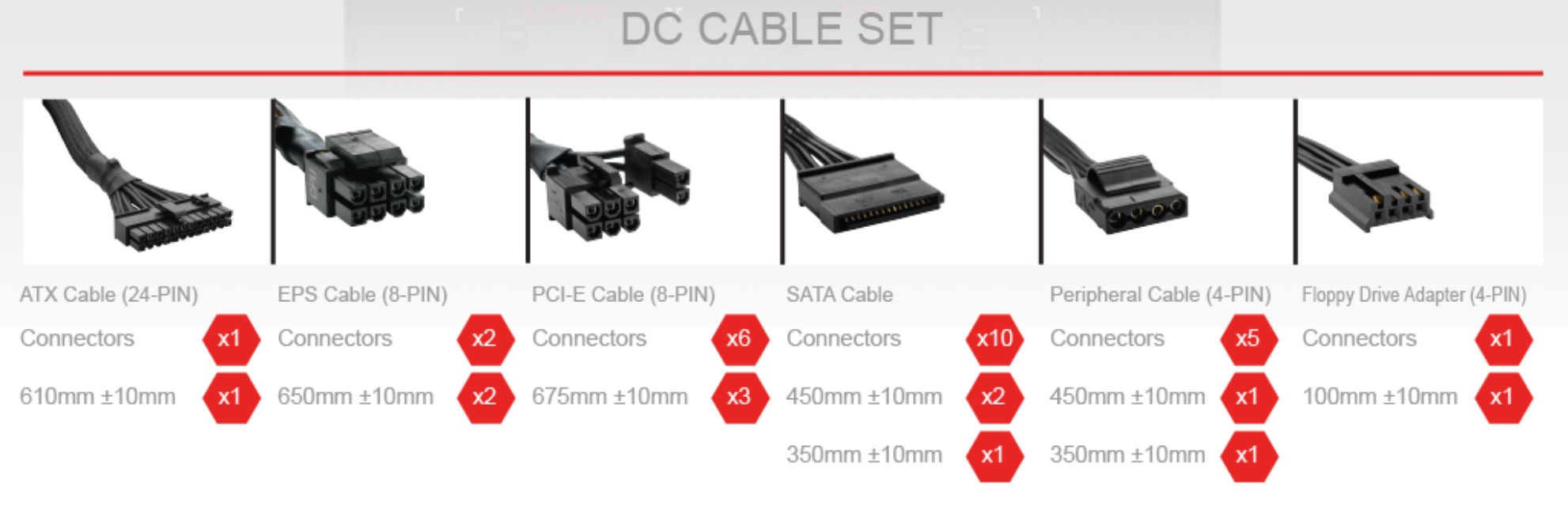 If you are building a gaming system then this power supply comes well equipped. There are six 6+2 pin PCIE cables for multiple GPU builds.