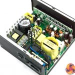 Seasonic are using high grade Japanese capacitors throughout the build with a single 105c rated Nichicon capacitor positioned in the primary stage. This is rated 400v 650uF. Interestingly Seasonic have adopted two primary capacitors in their earlier higher cost PRIME units. The Prime 850W Platinum for instance uses two Nippon Chemi Con capacitors at 400v 330uF each, for a total of 660uF output. The Seasonic Titanium 850W unit is ridiculously over specified – fitted with two Nippon Chemi Con 650uF and 450uF capacitors to output 1100uF!