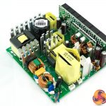 Inside are a fair few smallish heatsinks to aid with cooling key components. The power supply is using a full bridge LLC topology with synchronous rectification with DC-DC VRM’s for +3.3V and +5V rails on secondary.