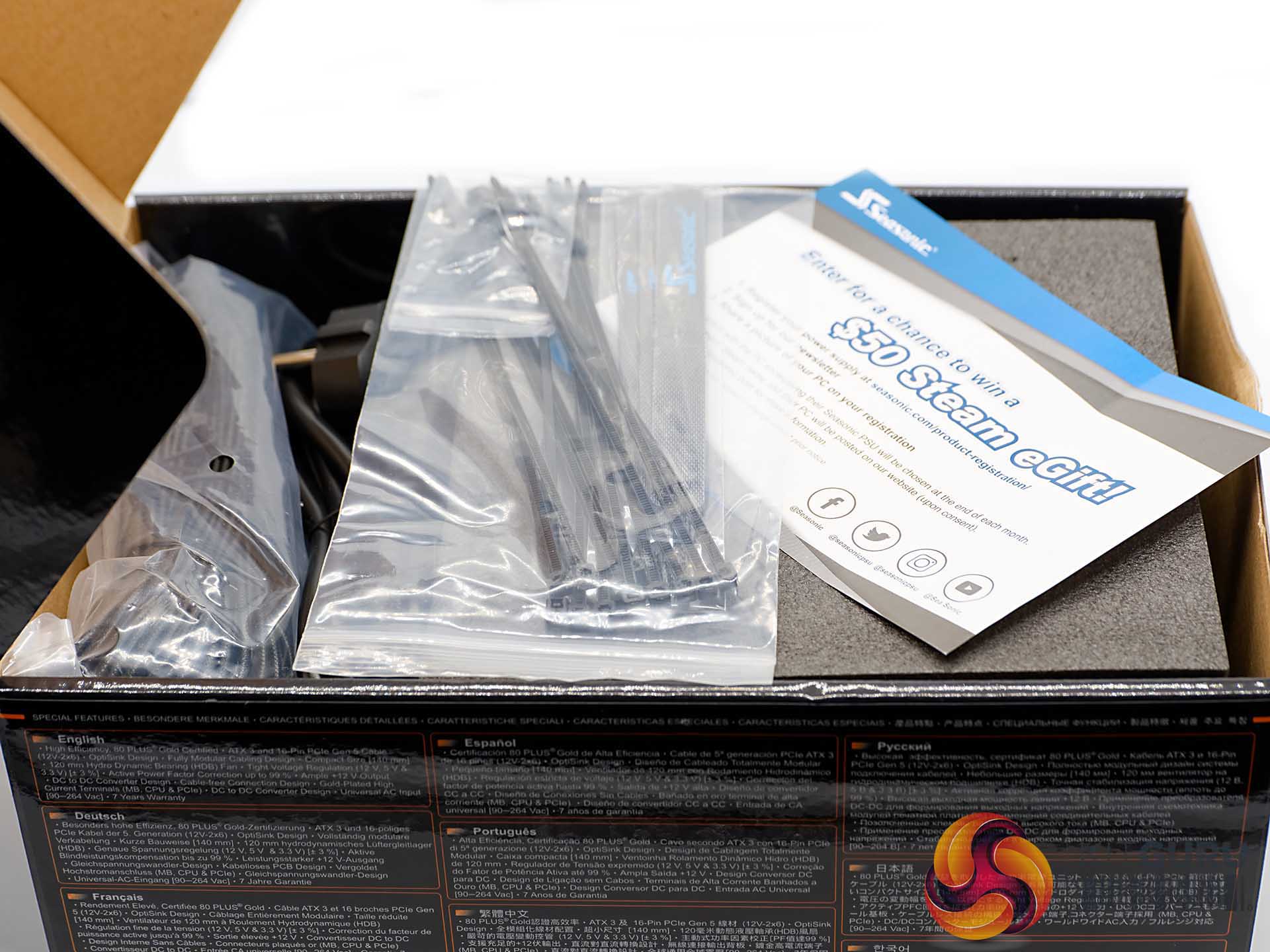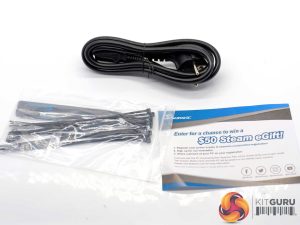 Inside the box, the power supply itself is protected between foam blocks. The accessories and cables are set to one side along with some literature on the product.