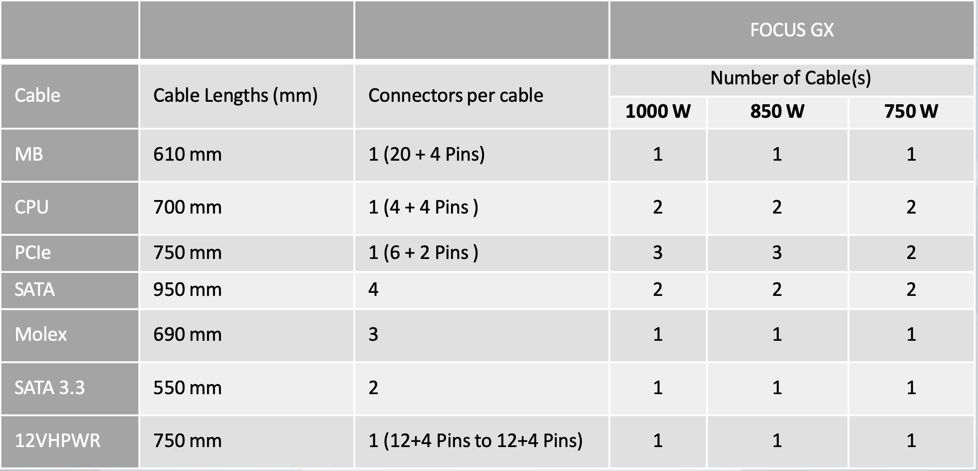 The cables supplied in the box are all individual sleeved and look fantastic. Ideal for a custom build where they are on show. Seasonic even show how they advise the 12VHPWR CABLE to be installed. The 1000 Watt supply has plenty of cables for a high end system build.