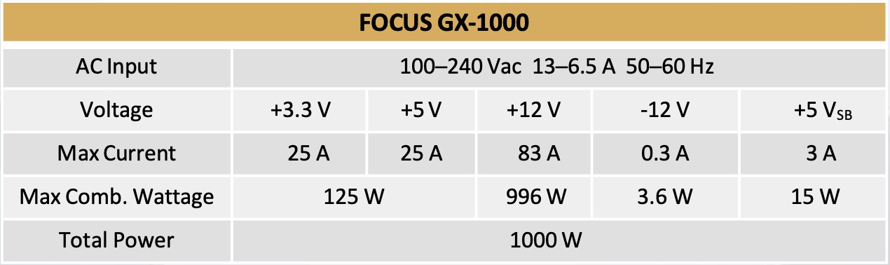 The 1000W unit is able to deliver 83A to the single +12V rail, with 25A to both +3.3V and +5V output.