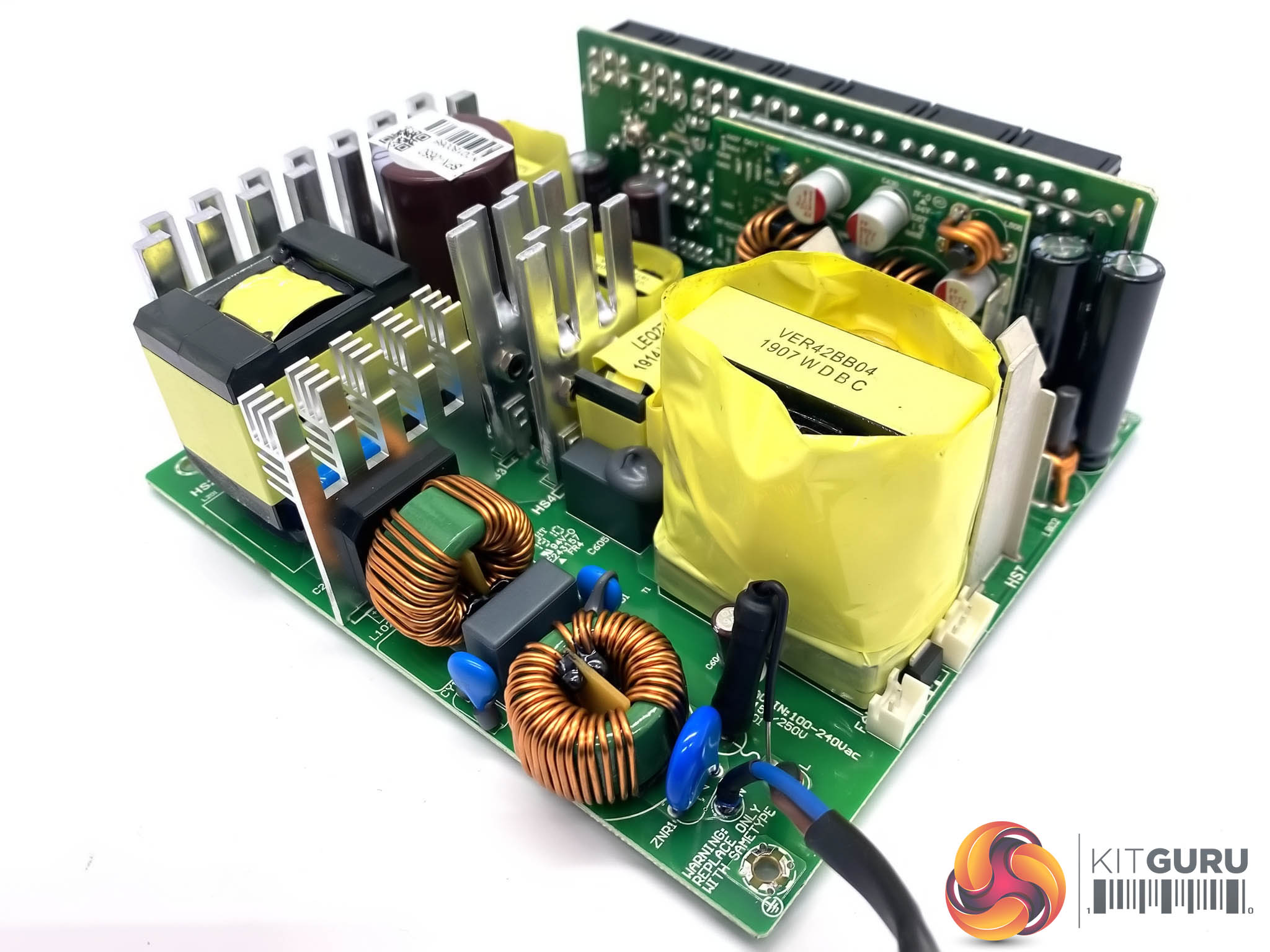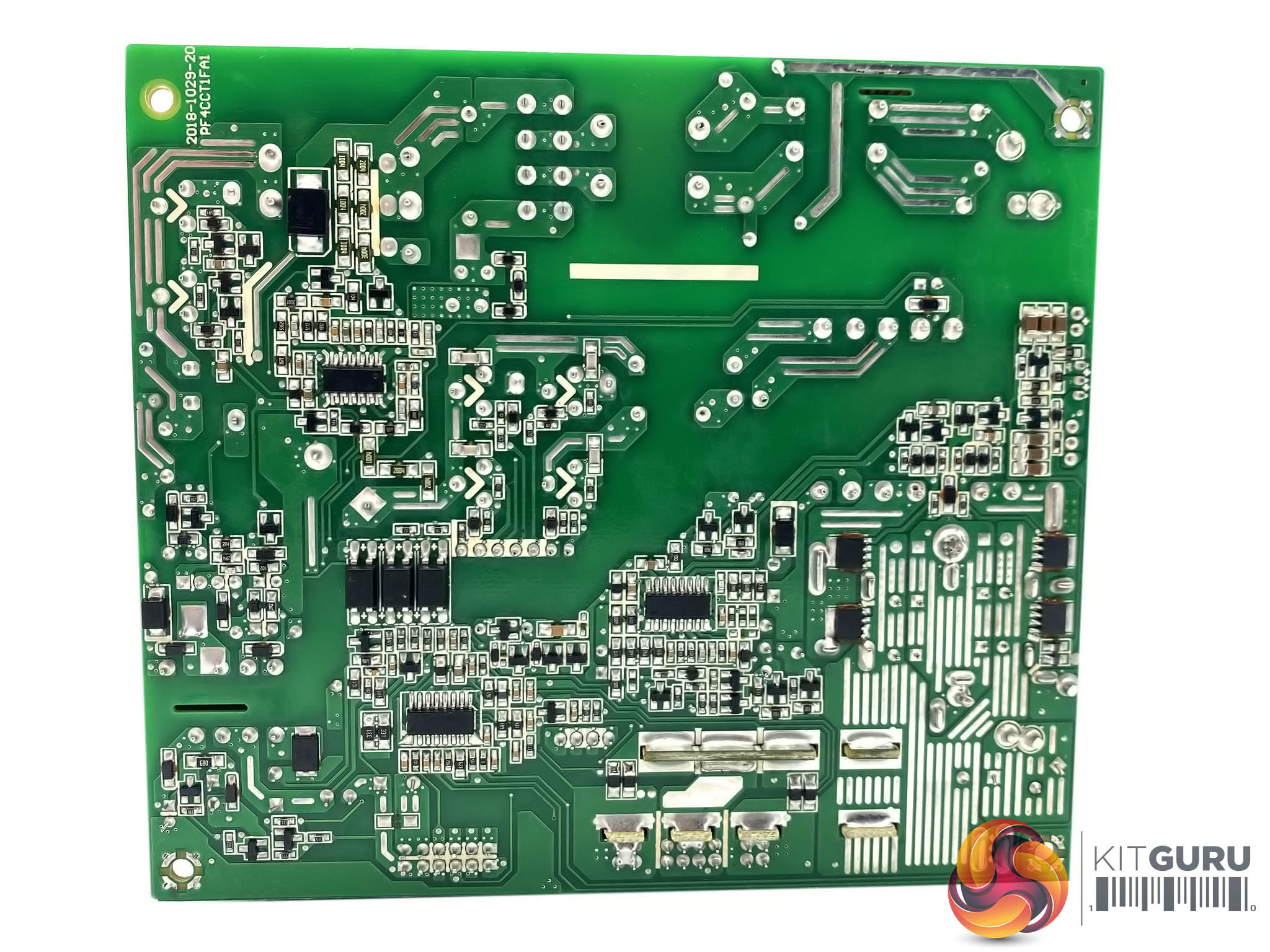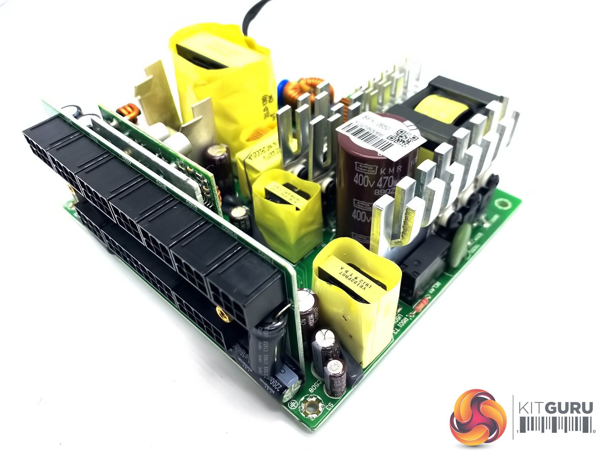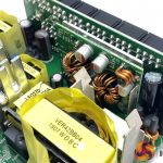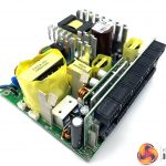 This design is a full bridge topology on the primary side along with an LLC resonant converter. On the secondary side FET's installed on the PCB's solder side rectify the +12V rail. Minor rails are generated through a couple of DC-DC converters.