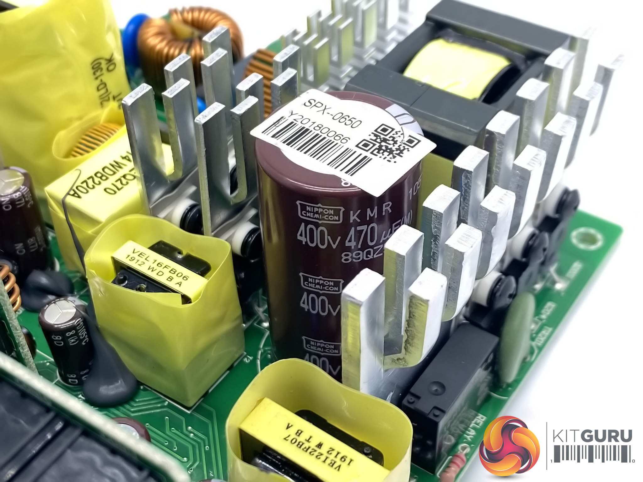 Seasonic are using high grade Japanese capacitors throughout the build with a single 105c rated Nippon Chemi Con positioned in the primary stage from their KMR series. This is rated 400v 470uF. In the secondary stage Seasonic have adopted a range of solid and standard electrolytic from Nippon Chemi Con.