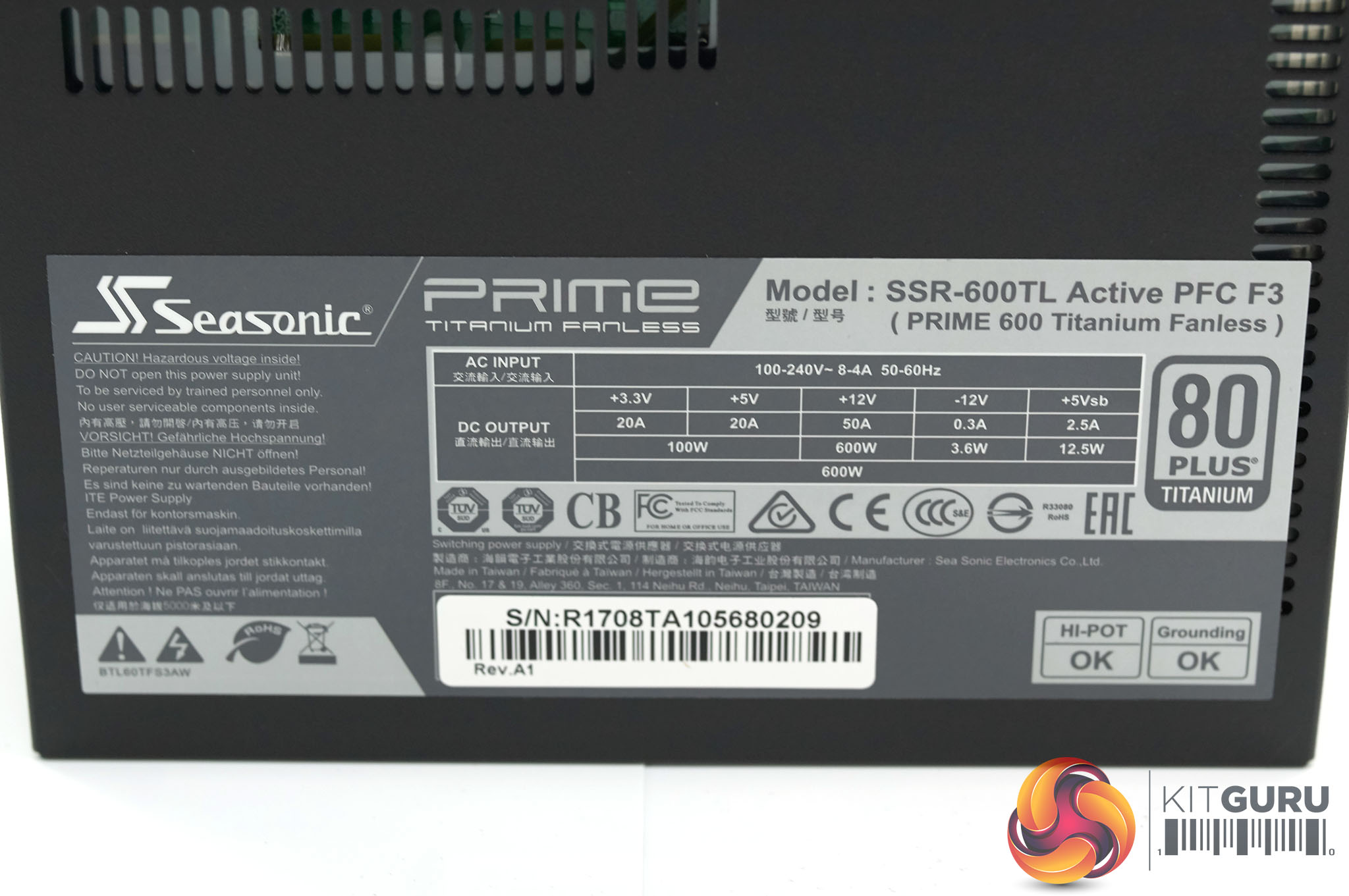The Seasonic Prime Titanium Fanless 600W can deliver 50A via the +12V rail which is impressive. The other rails are perfectly fine for a 600 watt unit.