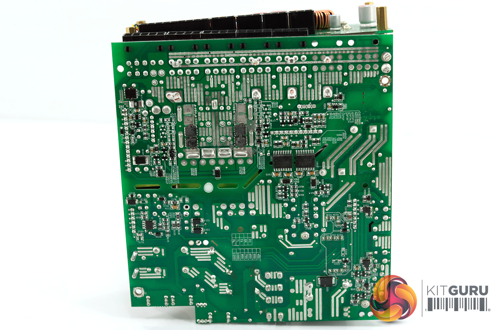 The soldering quality inside this unit is excellent, we noted nothing of any concern on the main PCB or modular boards. Even though this power supply is rated at 80 Plus Titanium efficiency levels, we notice four large heatsinks inside – this is clearly to help compensate for the lack of active cooling from above.