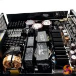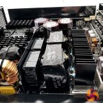 Seasonic are using a full bridge topology inside this power supply with an LLC resonant converter alongside a bridgeless interleaved PFC. The power for the 12V rail is created via 16 FETs. The minor rails are generated by a pair of DC to DC converters.