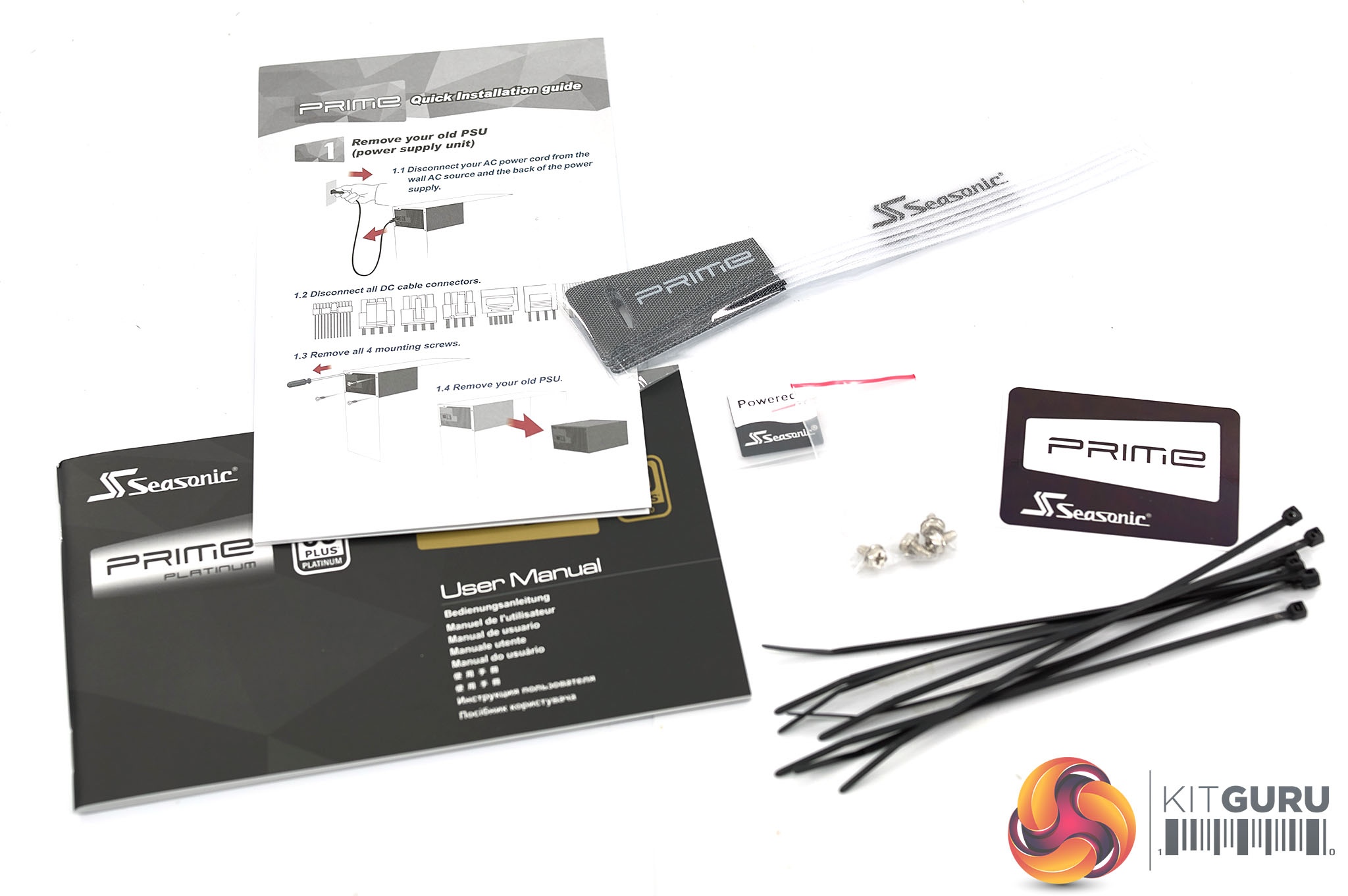 The bundle is solid. Seasonic supply literature on the product, two kinds of cable tie, screws, sticker and a case badge. There is also a regional specific power cable supplied in the box which is not in the picture above.