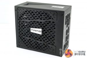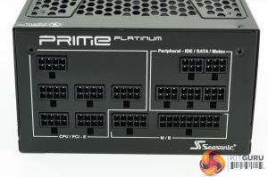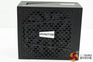 This is how we differentiate between Seasonic's Titanium and Platinum power supplies. The Titanium models have a lovely silver grill covering half of the black. Just plain black for this one.